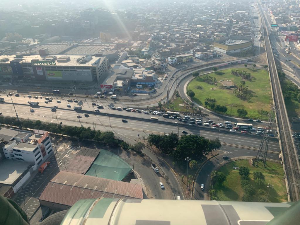 Además, el jefe del CC.FF.AA. y el comandante general de la PNP, junto al alcalde del distrito de Surco, Jean Pierre Combe, sobrevalaron la ciudad a bordo de un helicóptero, con la finalidad de verificar el cumplimiento de la cuarentena en el marco de la lucha contra el COVID-19.