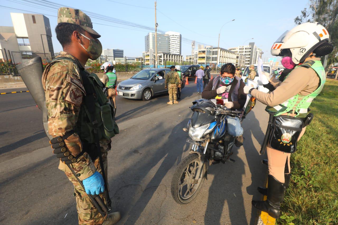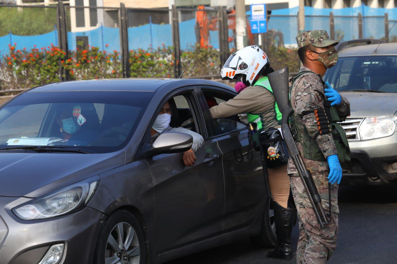 En el operativo que realizan los efectivos policiales y militares, se pide a los conductores el nuevo pase vehicular, pues está prohibido el uso de un vehículo particular para la compra de alimentos o trámites bancarios.
