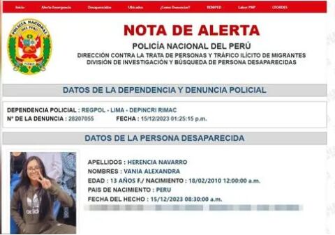 Roque Edwin Herencia Mondragón vive momentos de angustia e incertidumbre al no tener noticias de su hija Vania Alexandra Herencia Navarro. La adolescente desapareció después de salir de su colegio, situado en el cruce de las avenidas Los Próceres con General Vidal, en el distrito limeño del Rímac.