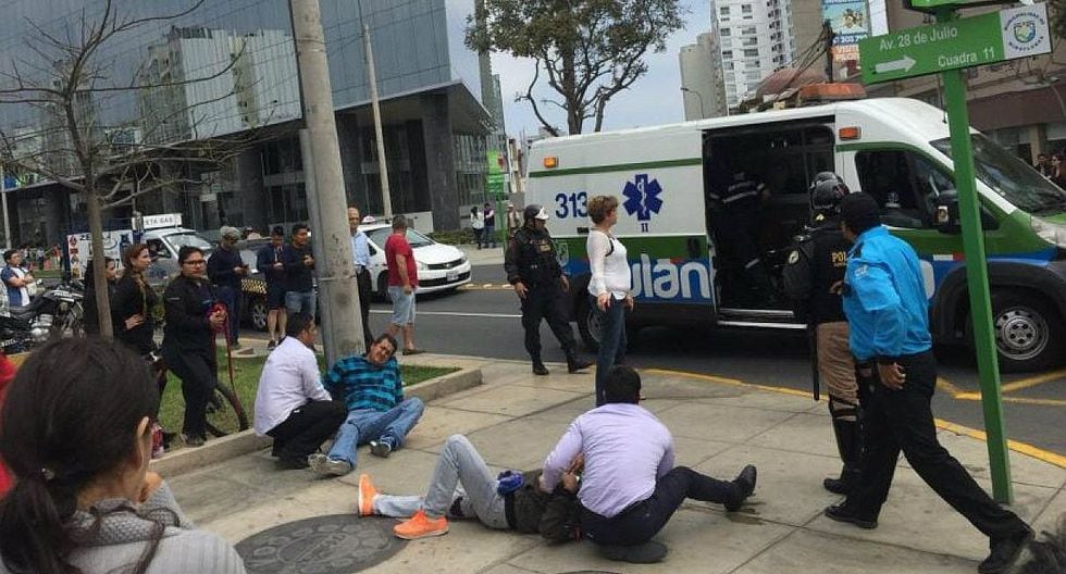 Esta tarde, dos cambistas terminaron heridos de bala tras ser asaltados por una banda de delincuentes en la avenida 28 de julio, en Miraflores.