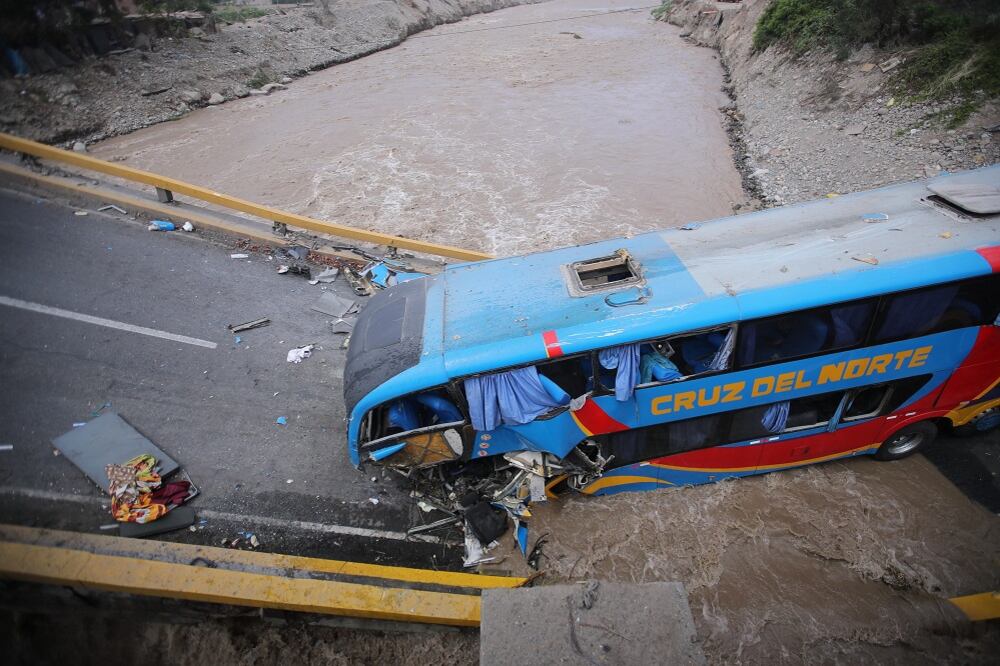 Una tragedia ocurrió ocurrió en el kilómetro 75 de la Panamericana Norte, cuando el puente Chancay colapsó y provocó la caída de un bus de dos pisos repleto de pasajeros y un auto al río Chillón, en Huaral (Lima).
