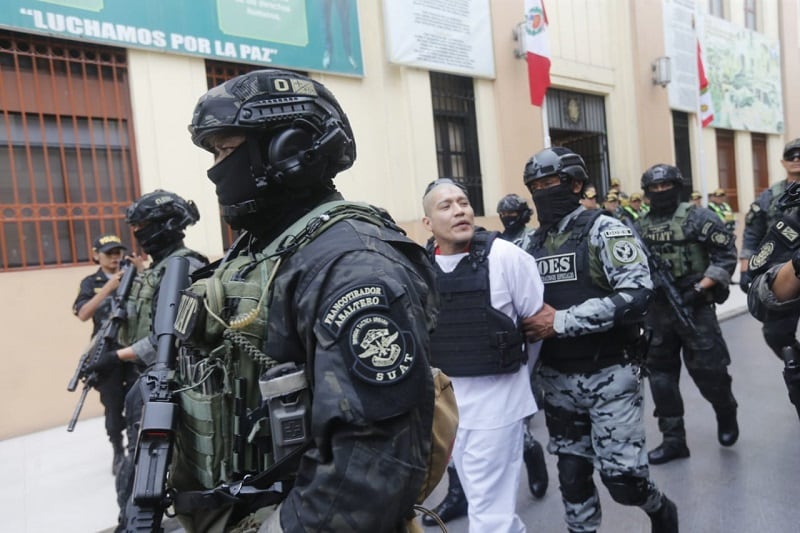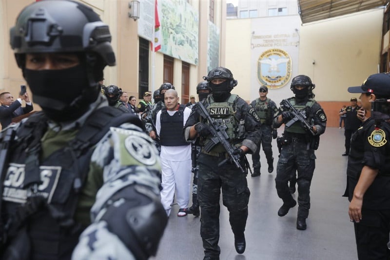 Su traslado se realizó bajo extremas medidas de seguridad y, a su llegada a Lima, supervisada por el ministro de Justicia, Walter Martínez, cumplió con el control de identidad y exámenes médicos, mientras los exteriores de la Dircote permanecían con fuerte resguardo policial.