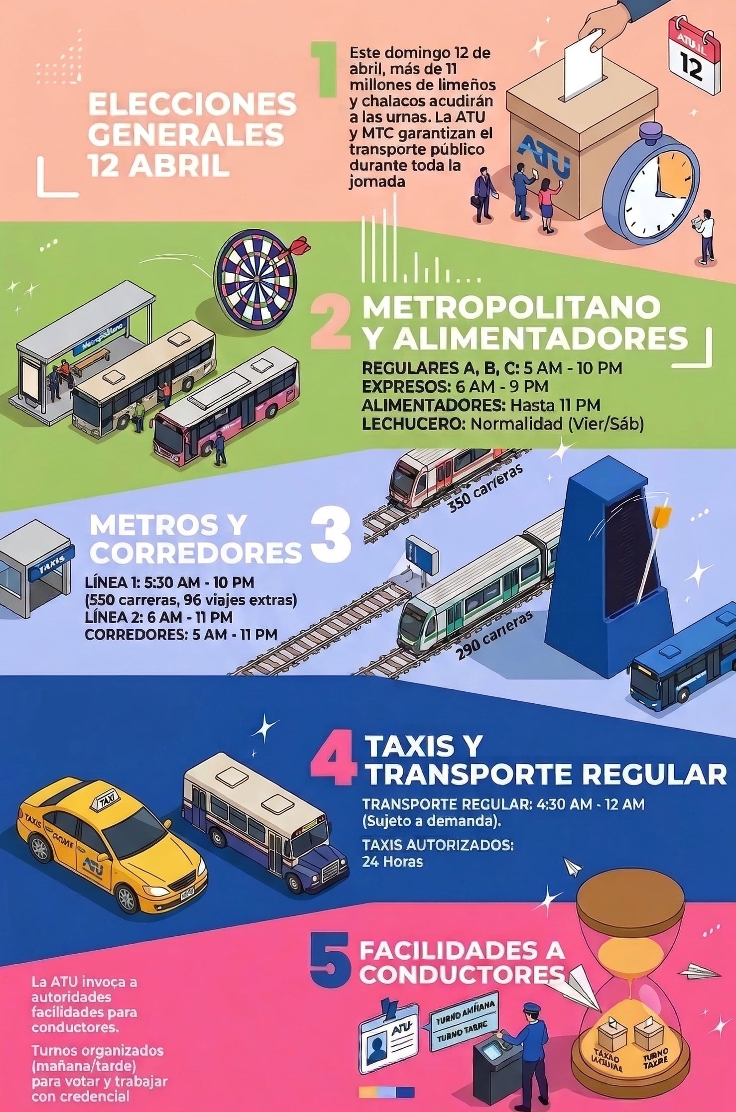“La ATU invoca a las autoridades electorales a brindar las facilidades necesarias a los conductores de transporte público formales para que puedan ejercer su derecho a voto sin afectar el servicio”, solicitaron.