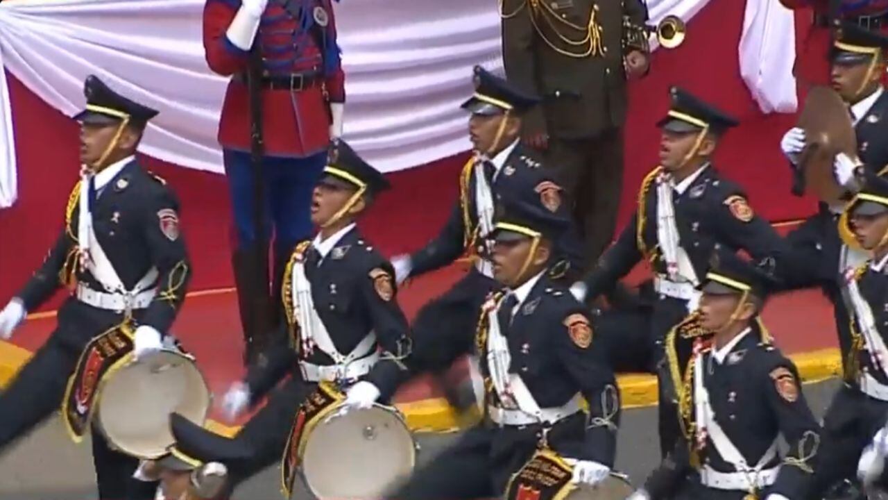 11:10 a.m. La Gran Banda Conjunta de las Fuerzas Armadas y la Policía Nacional desfila al compás de la imponente ‘Marcha Túpac Amaru’