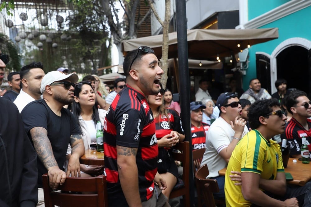 Y es que hinchas nacionales y extranjeros se reunieron en la conocida ”Calle de las Pizzas" para ver las incidencias de la Final de la Copa Libertadores entre Flamengo y Palmeiras.