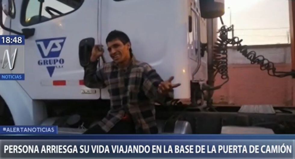 Irresponsabilidad total. Un hombre, cuya identidad no ha sido identificada, arriesgó su vida al viajar encima de la base de la puerta de un tráiler, agarrándose de una sola mano. Esto ocurre en medio del Estado de Emergencia, lo que incluye un aislamiento social para evitar la propagación del nuevo coronavirus, COVID-19.