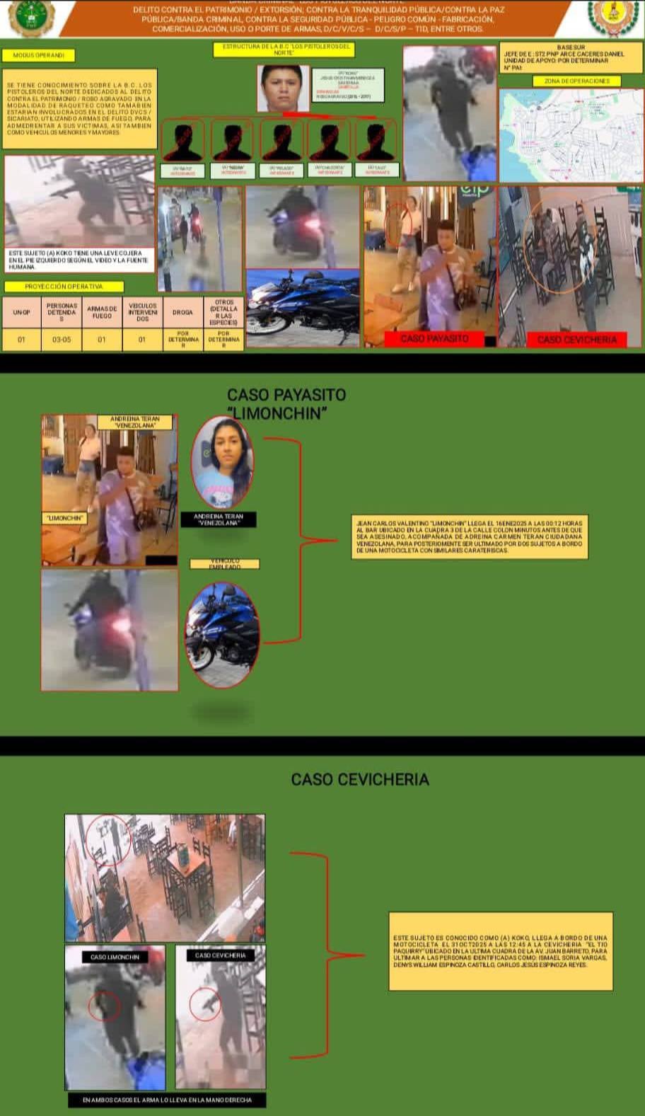 La pareja también figura como responsable del sangriento atentado en la cevichería “El Tío Paquiry” cometido el 31 de octubre del año pasado, dejando un saldo fatal de tres personas. Los disparos de los pistoleros ocurrieron en horario de comida, generando pánico generalizado entre los comensales presentes.