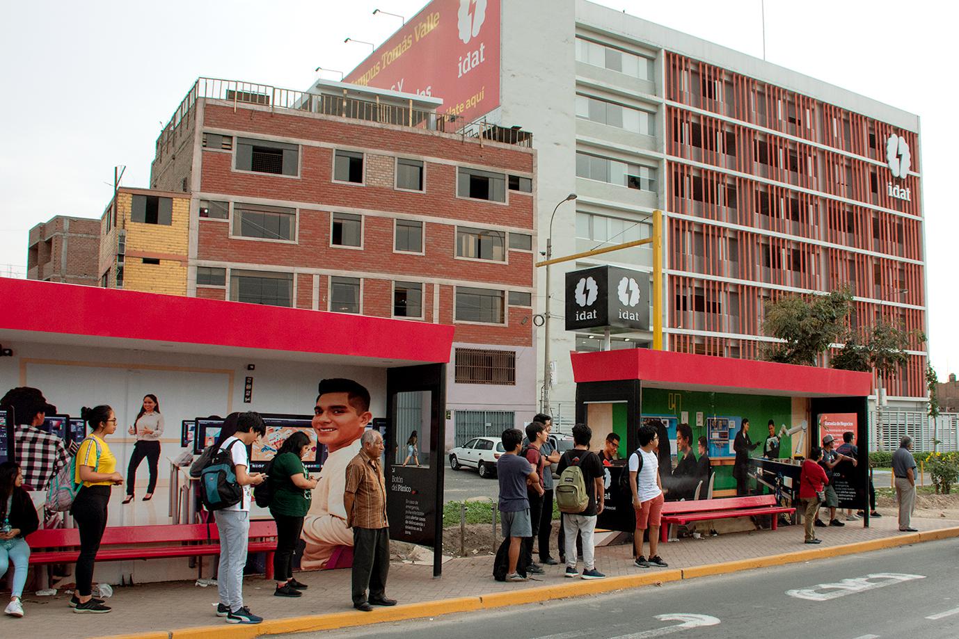 Ante esta problemática, los alumnos de Idat, en colaboración con el área de marketing de la misma institución, acaban de inaugurar el primer paradero ecológico compuesto por paneles solares, logrando el uso eficiente de la energía acumulada al servicio de la comunidad, que incluye un botón de pánico conectado a una alarma que produce un sonido de alerta fuerte en toda la zona, que tiene una función disuasiva para los delincuentes y llama la atención al personal del municipio o policial.