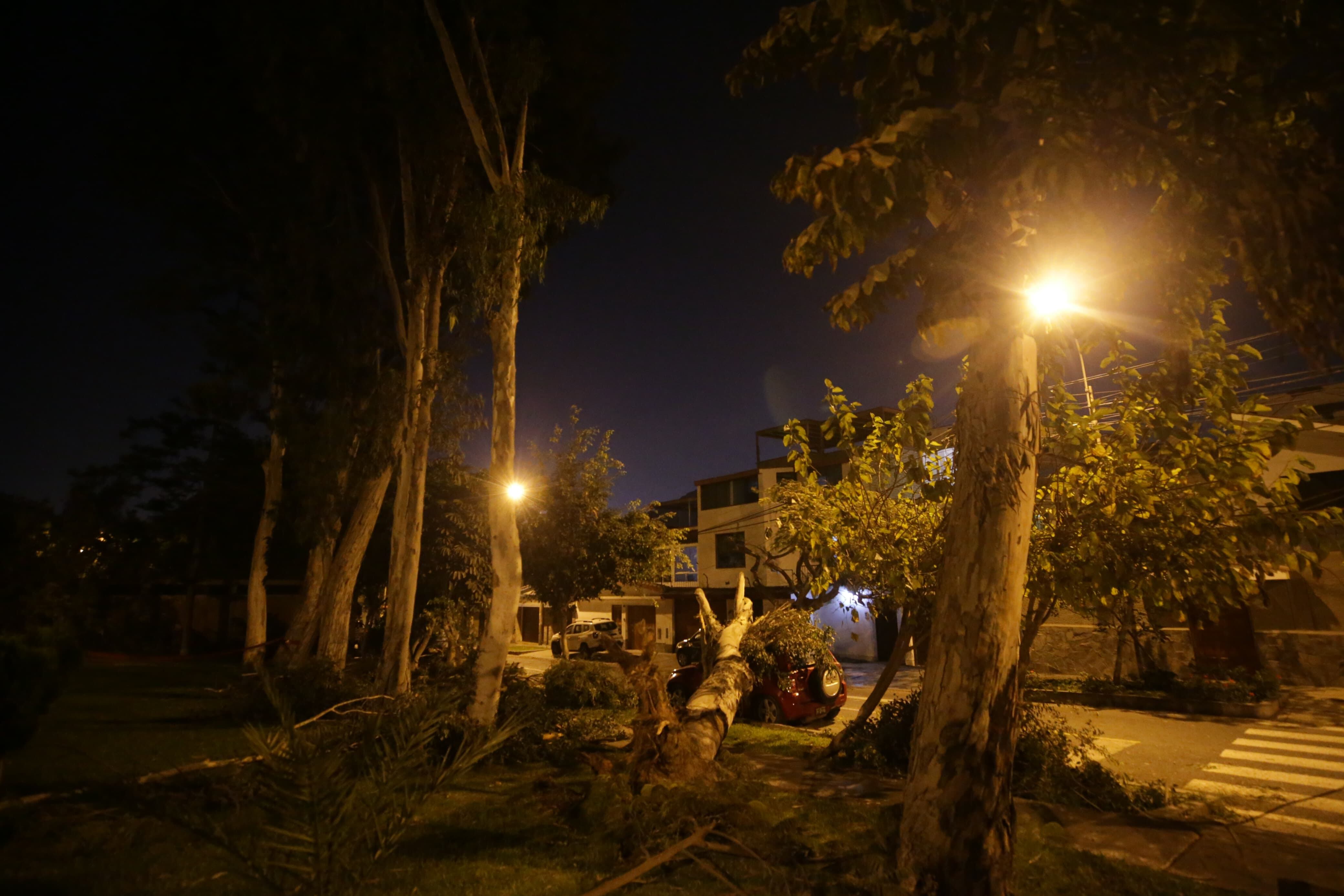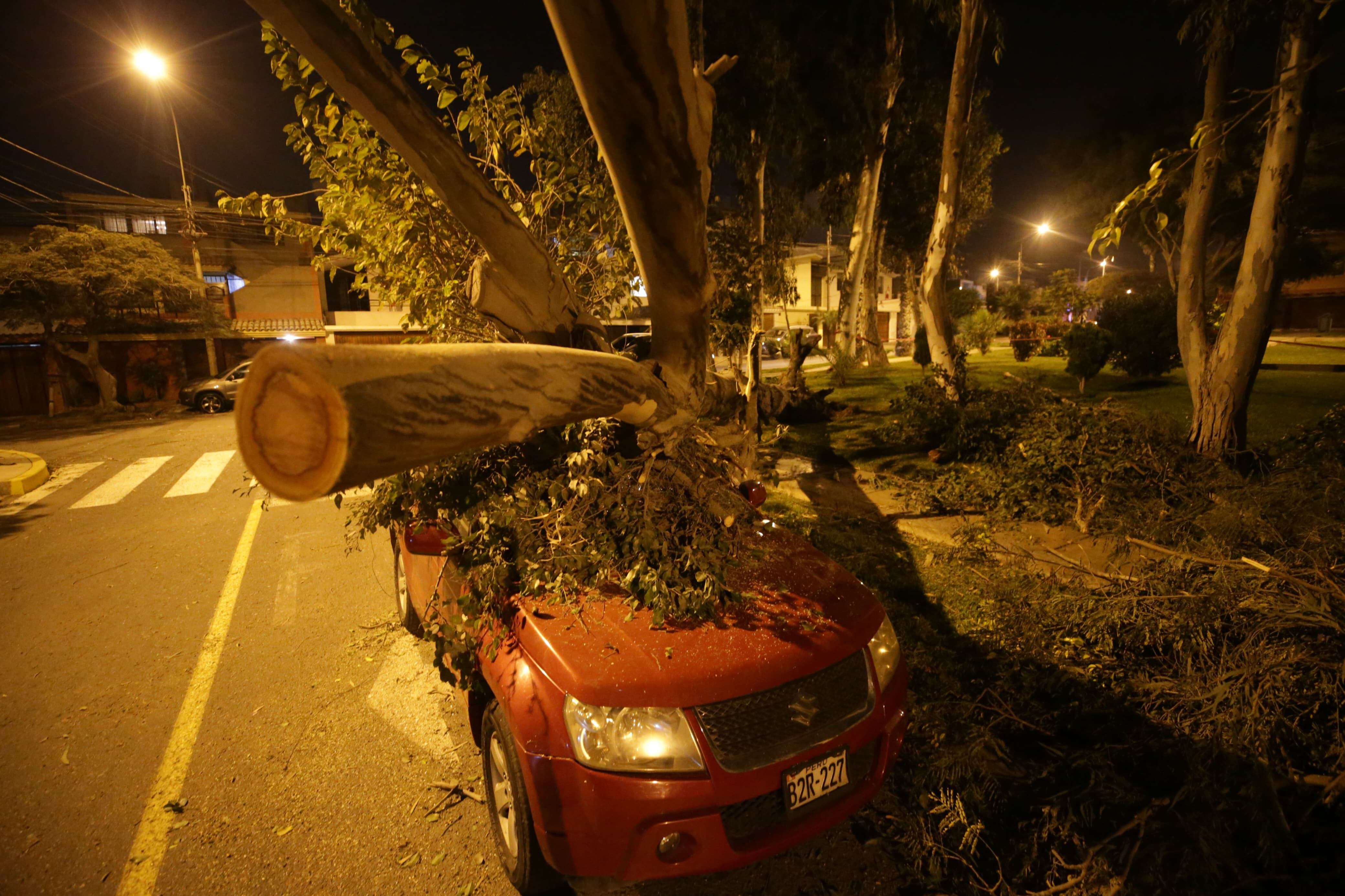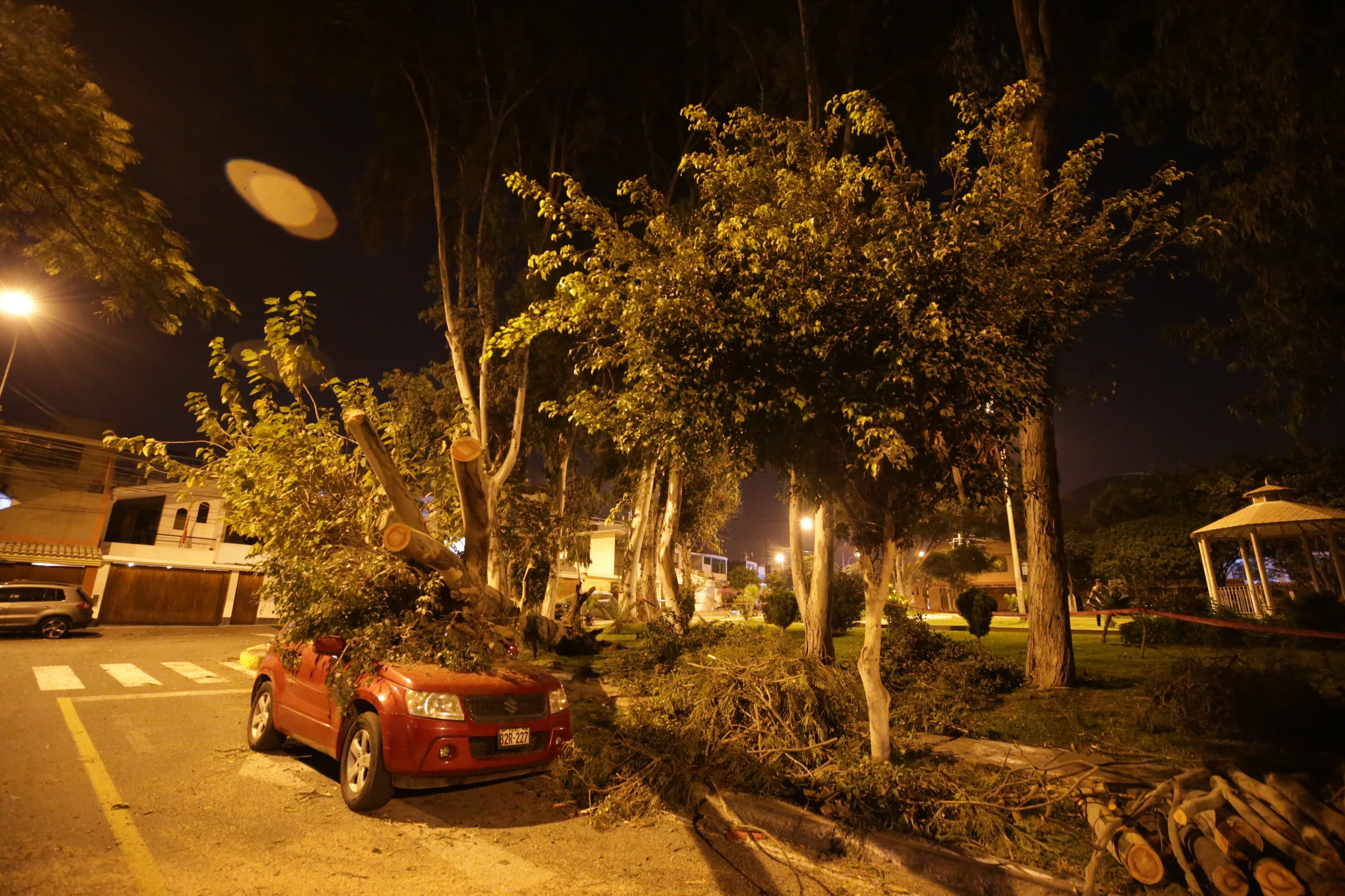 En el distrito limeño de La Molina, árboles de eucalipto cayeron sobre un vehículo y parcialmente sobre una vivienda en la urbanización Las Viñas debido a las ráfagas, sin reportarse heridos, según un reporte de RPP.