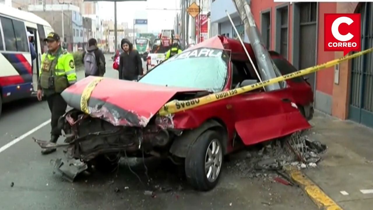 Un hombre aparentemente ebrio chocó su automóvil contra un poste de alumbrado público en el distrito de Lince, lo que ha dejado a la estructura en peligro inminente de colapsar por completo.