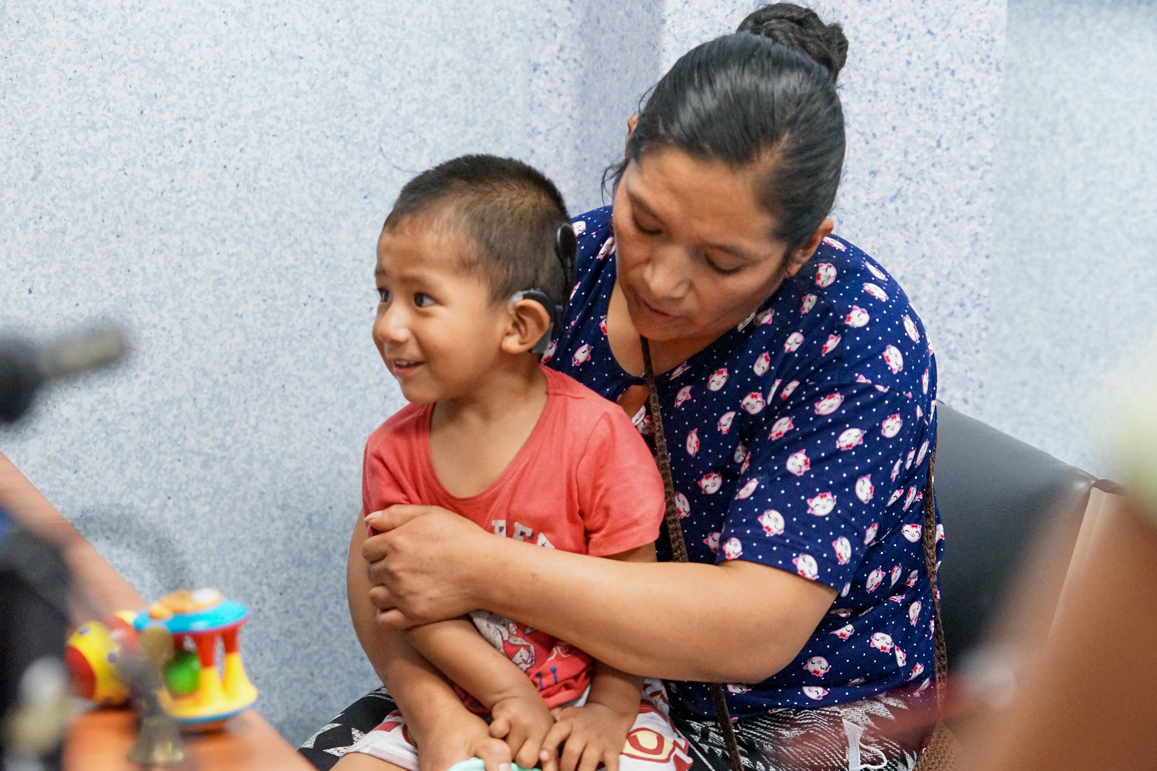 Dos niños con sordera congénita escucharon por primera vez tras la activación de sus implantes cocleares en el Instituto Nacional de Salud del Niño San Borja, en Lima.