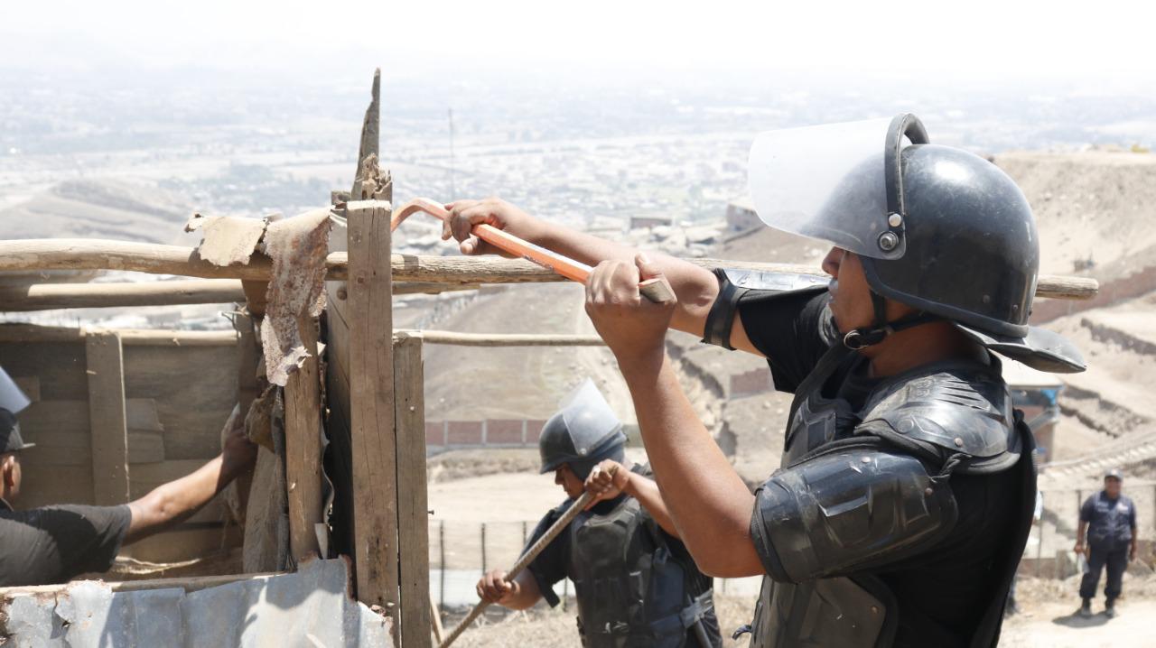 Invasores de las Lomas de Lúcumo, una zona intangible de 150 hectáreas y considerada como el ‘pulmón verde’ del sur de Lima, fueron desalojados por miembros de la División de Operaciones Tácticas de la Municipalidad Distrital de Pachacámc en coordinación con el Serenazgo.