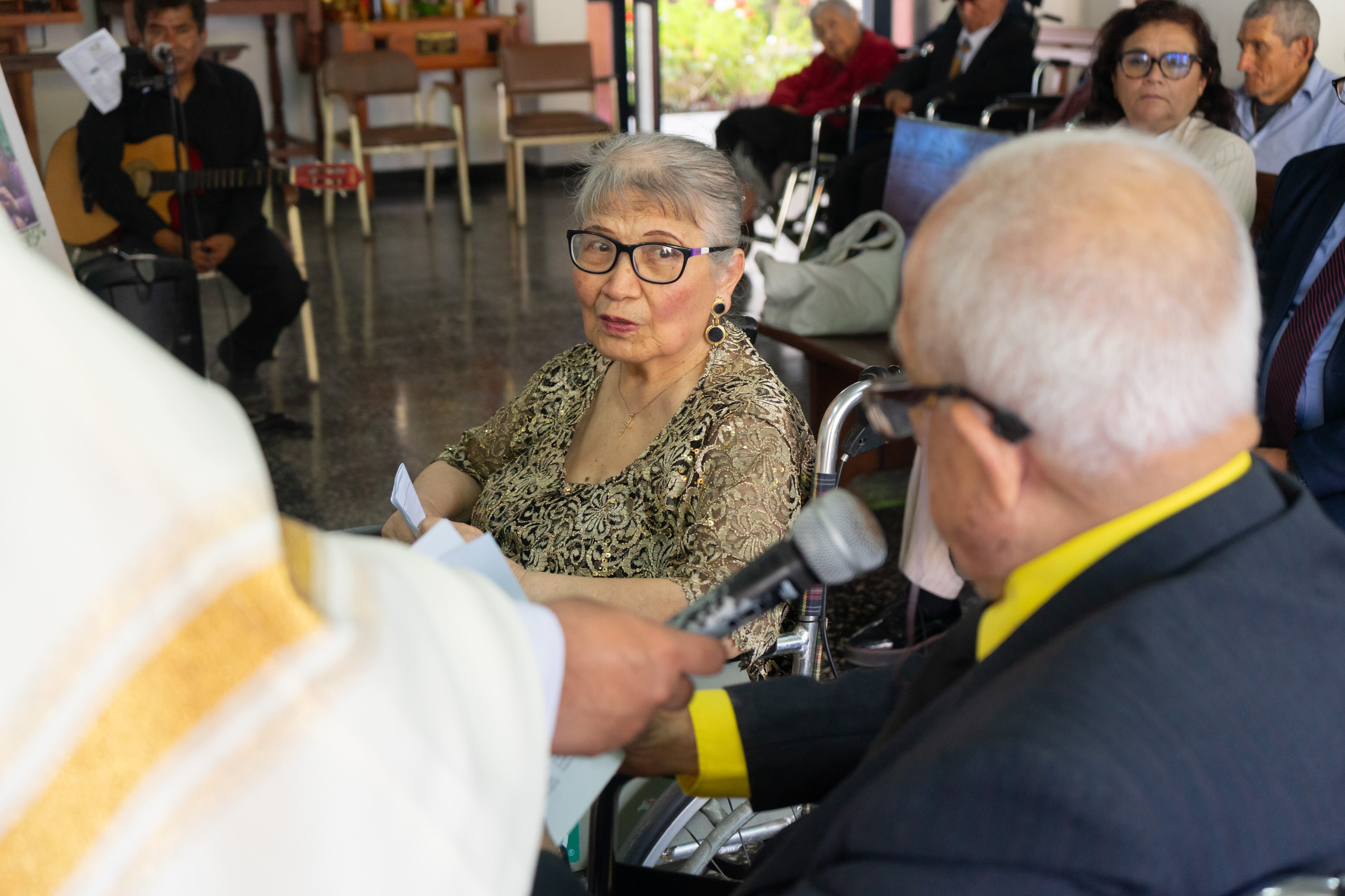 Carlos Enrique del Busto Ezeta (87) y Lucrecia Vásquez Maqueira (88), la pareja más longeva del Hogar Canevaro, celebraron sus bodas de diamante con una emotiva renovación de votos matrimoniales realizada en la capilla de este centro gerontogeriátrico de Lima.