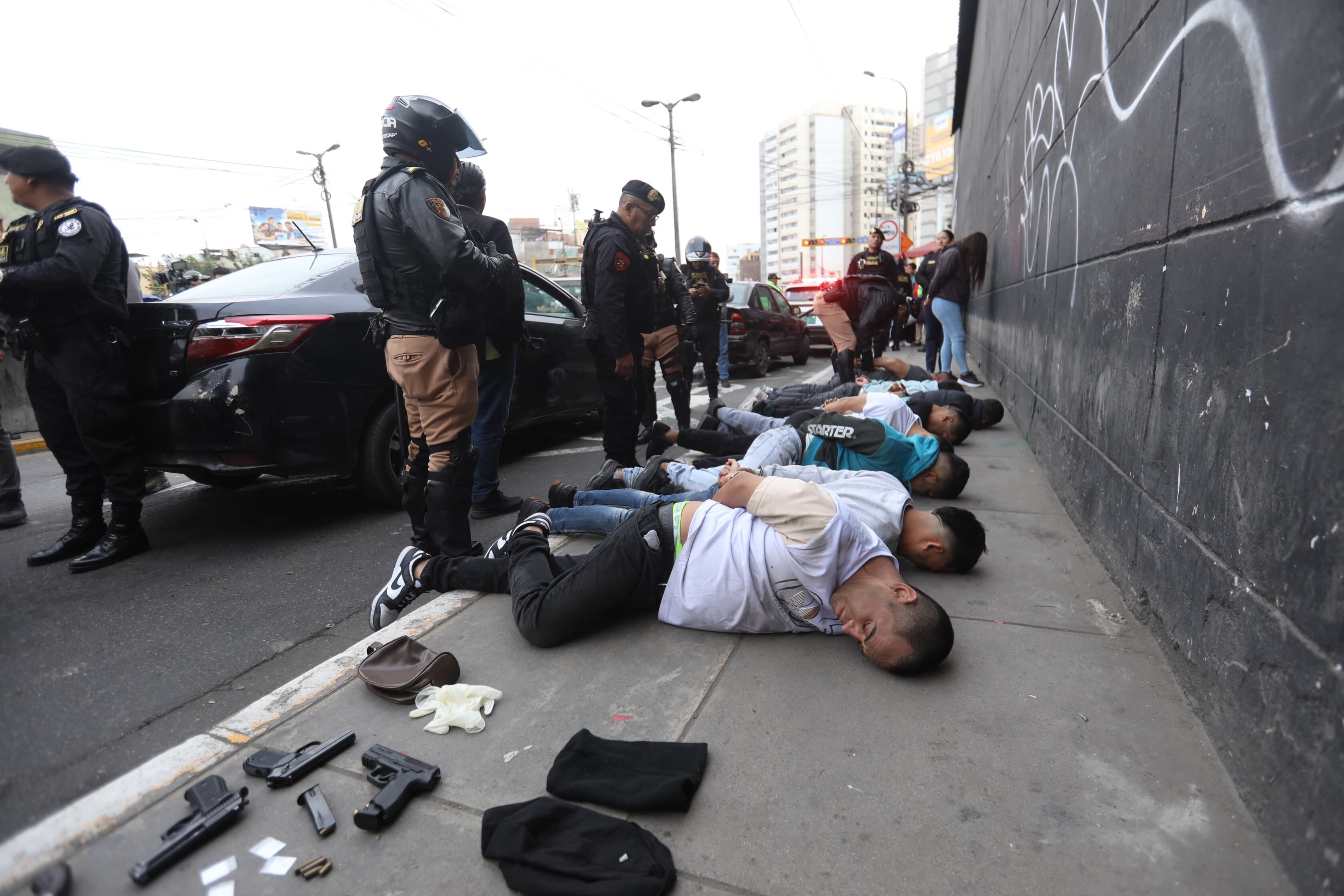 La Policía Nacional indicó que los detenidos formarían parte de la banda criminal ‘Los Gatilleros de Lima Metropolitana’, especializada en el reglaje y marcaje. Los sujetos se desplazaban por los alrededores del distrito en cuatro vehículos, uno de los cuales había sido reportado como robado.