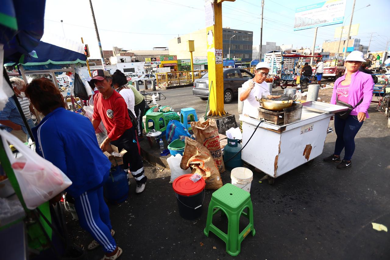 En el operativo se verificó que muchos comerciantes ambulantes de comida preparada atendieron pese a las normas vigentes por el estado de emergencia.