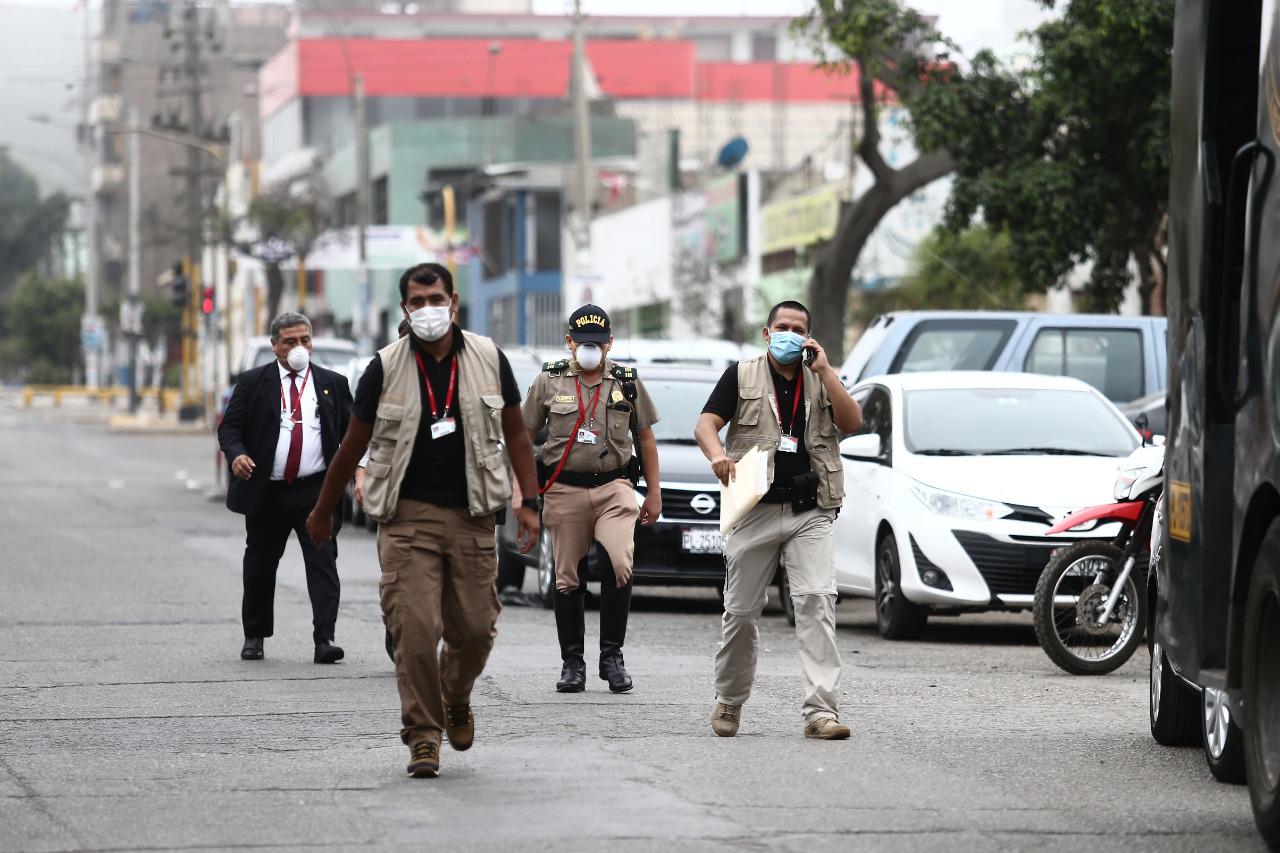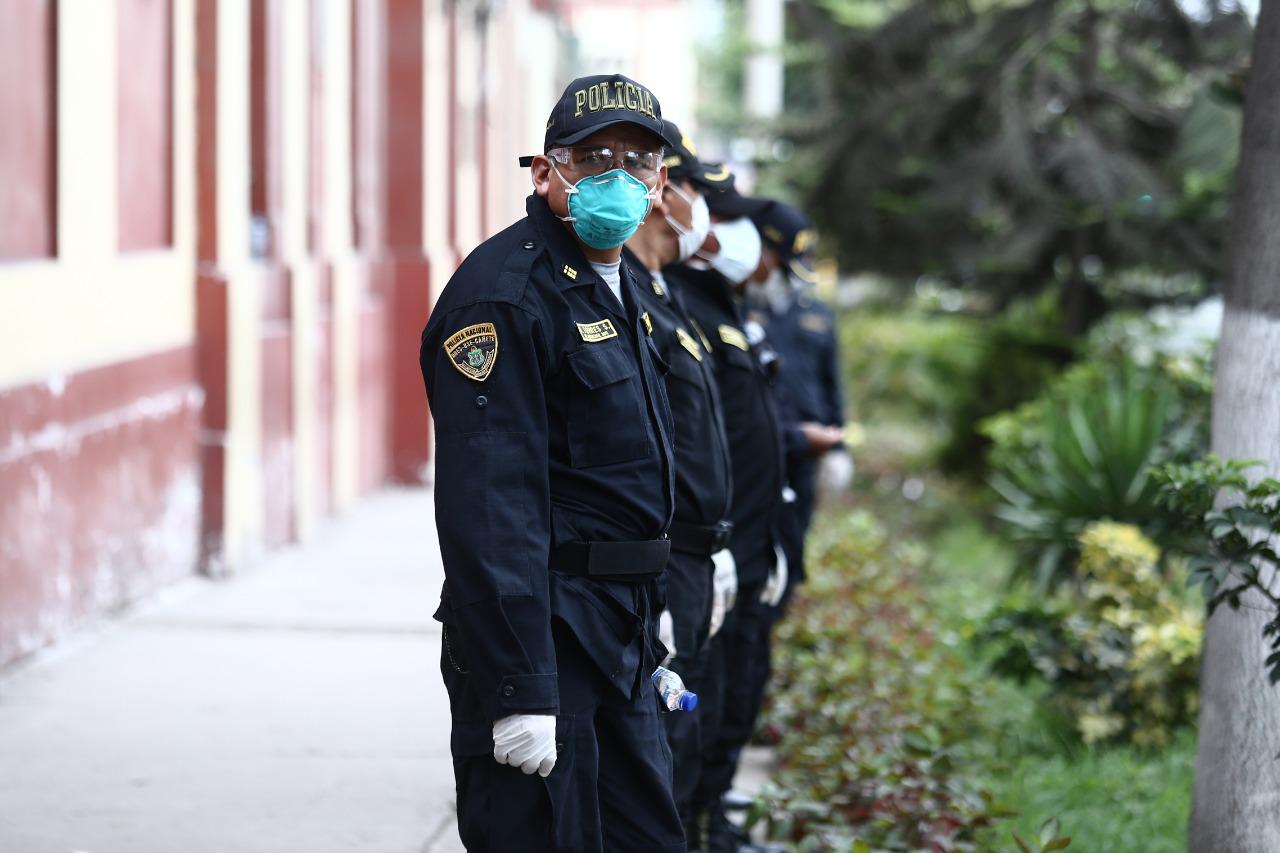 Numerosos agentes que en estos días se encuentran en la primera línea de lucha contra el coronavirus vienen haciendo largas colas para ser sometidos a las pruebas de descarte del COVID-19, en el distrito de La Victoria.
