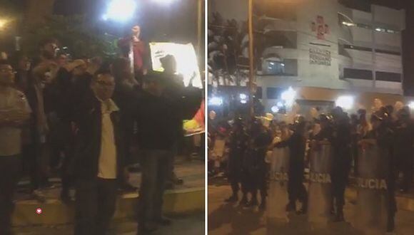 Los colectivos que no están de acuerdo con el indulto otorgado a Alberto Fujimori llegaron a los exteriores de la Clínica Centenario para expresar su rechazo a la decisión tomada por el presidente Pedro Pablo Kuczynski. En el lugar, hay un fuerte contingente policial que busca evitar enfrentamientos entre los manifestantes y los simpatizantes del expresidente.