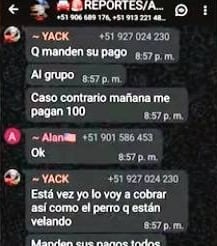 El reporte de la PNP, señala que las personas detenidas se habrían dedicado a exigir, mediante grupos de WhatsApp, los pagos de cupo diarios y semanales para permitir trabajar a los conductores de combis y minivanes que cubrían rutas entre Acho-Santa Clara y Acho-Puente Piedra.