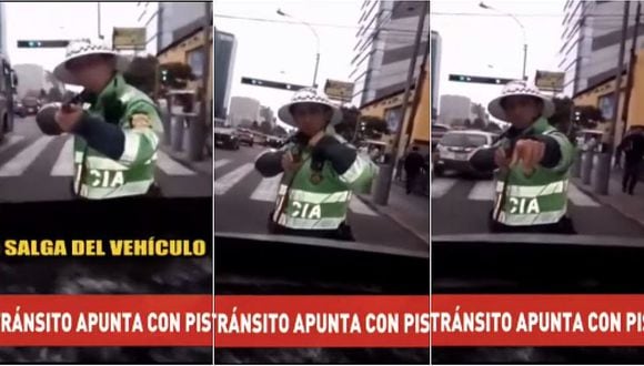 Un hombre que invadió el carril segregado del Corredor Rojo entre las avenidas Petti Thouars y Javier Prado en San Isidro fue apuntado por un policía de tránsito pues habría intentado embestirlo con su vehículo.