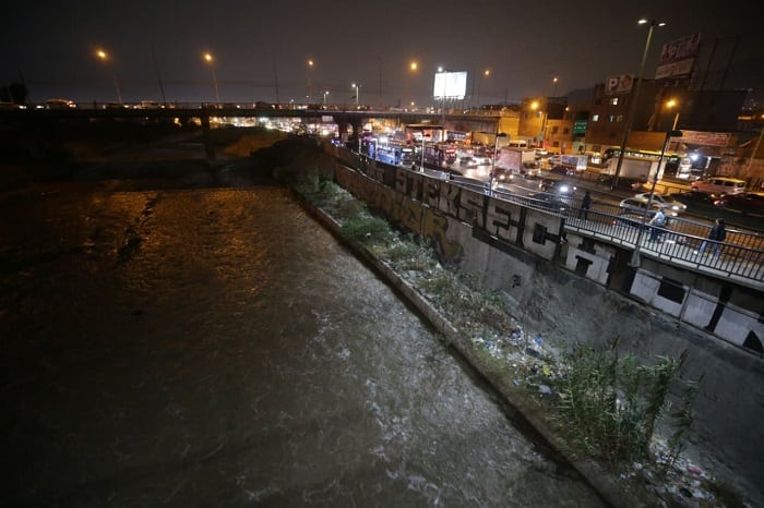 El Servicio Nacional de Meteorología e Hidrología del Perú (Senamhi) informó que el caudal del río Rímac se incrementó hasta alcanzar aproximadamente 40 metros cúbicos por segundo en su tramo urbano, especialmente a la altura del puente Trujillo, en el distrito del Rímac.