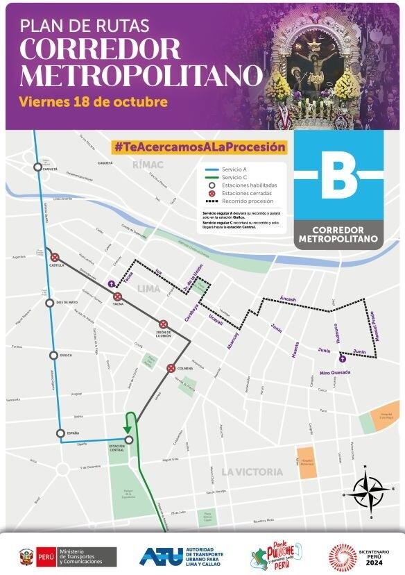 La Autoridad de Transporte Urbano para Lima y Callao (ATU) informó sobre los ajustes en las rutas del transporte público, incluyendo el Metropolitano y los corredores Azul y Morado.