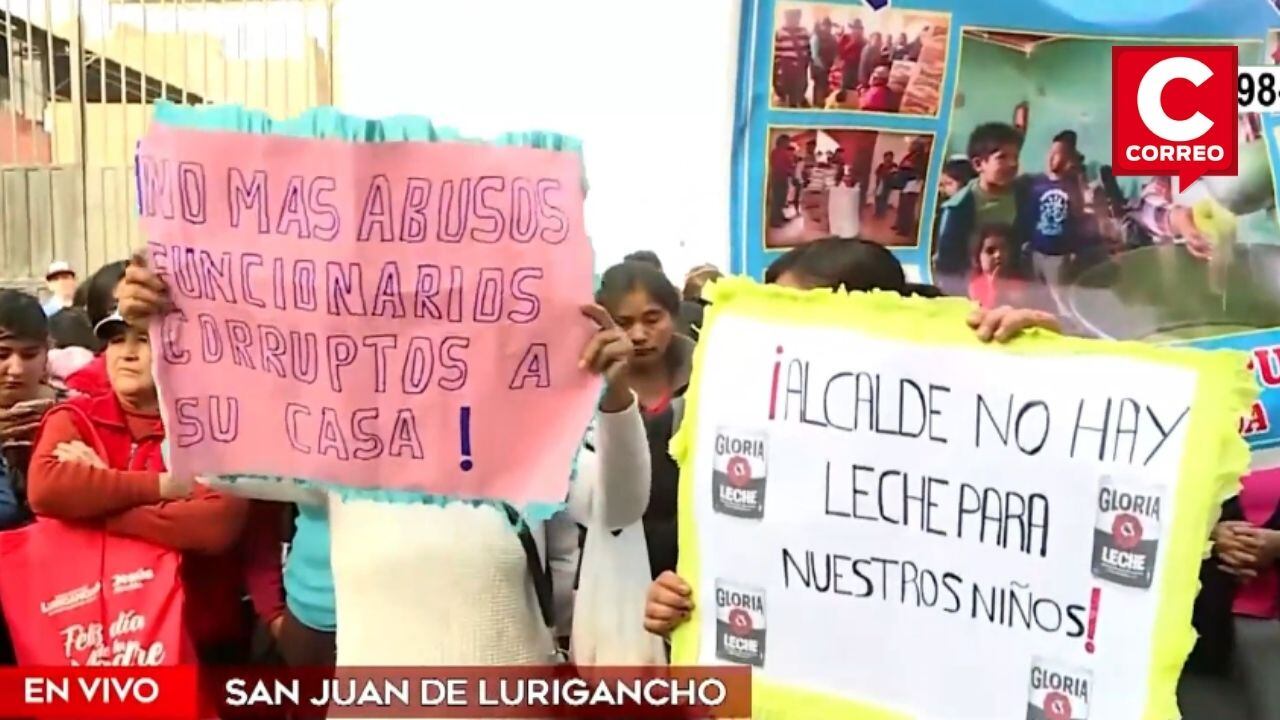 Cerca de 200 madres que conforman las asociaciones del programa de vaso de leche en el distrito de San Juan de Lurigancho se reunieron en los exteriores de la municipalidad para protestar.