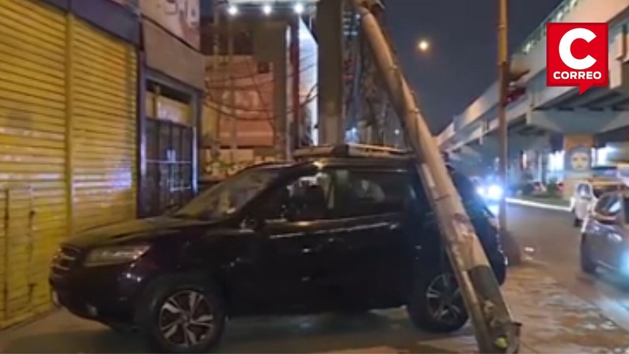 Los miembros de una familia se salvaron de morir tras la caída de un poste sobre su vehículo en el distrito de San Juan de Lurigancho. El despiste de un camión provocó el derrumbe de la estructura.