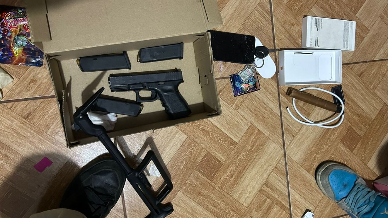 Durante el registro del inmueble los agentes recuperaron dos armas de fuego, una de ellas equipada con puntero láser de alta precisión. Además, hallaron un artefacto explosivo, diez teléfonos celulares, droga y una cortadora eléctrica entre los enseres decomisados.