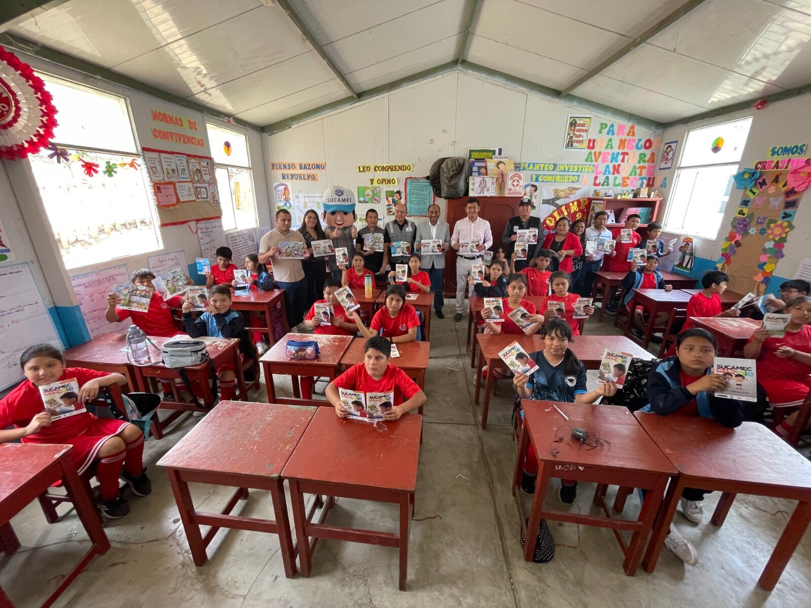 El Titular de la Superintendencia Nacional de Control de Servicios de Seguridad, Armas, Municiones y Explosivos de Uso Civil (Sucamec), General (r) PNP, Teófilo Mariño, y el alcalde del distrito de Mi Perú, Irvin Chávez, dialogaron con más de 250 escolares que cursan el 5to y 6to grado de primaria y el 1ero al 5to de secundaria, dando inicio a las Charlas de Sensibilización: ¨Sucamec va a tu cole. Las Armas no son juego¨, en el Callao.