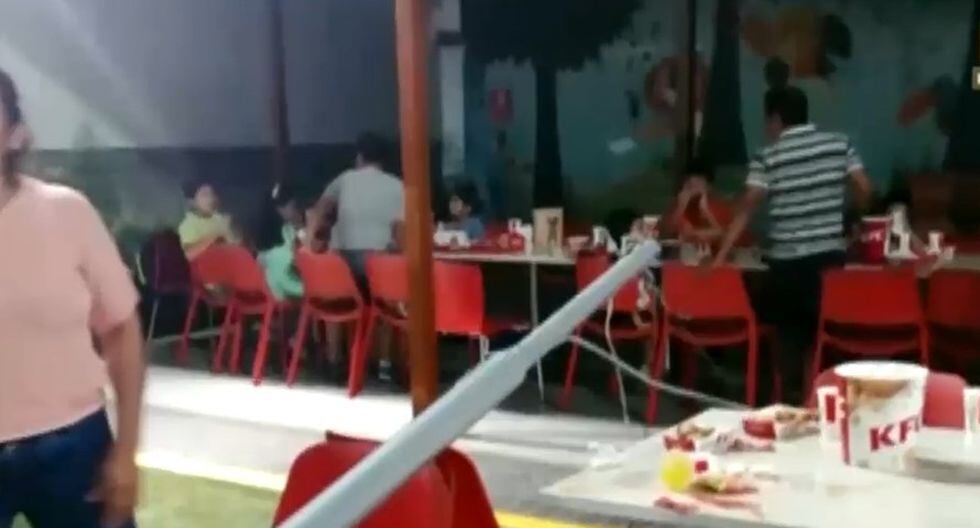 De acuerdo con América Noticias, la pesada estructura que era el soporte metálico del toldo ubicado en el jardín del establecimiento, golpeó en la cabeza a Maura Rosa Atahua Rojas de 41 años. La mujer quedó inconsciente y sangrando. El matinal indicó que el esposo de la agraviada resultó con un corte en la cabeza.