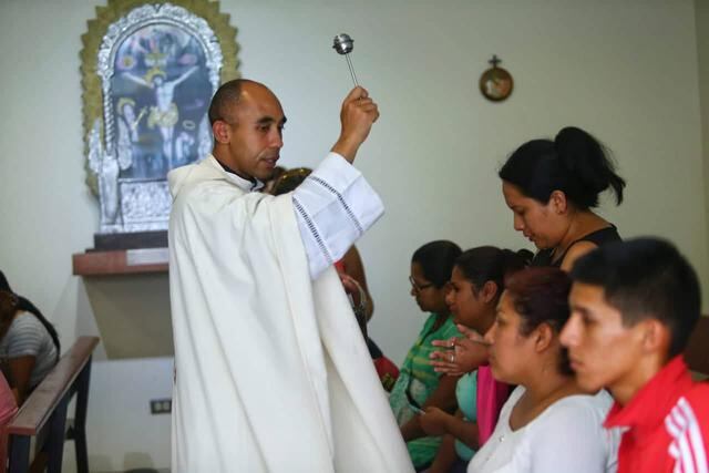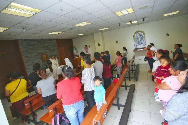 Familiares y personas allegadas a los heridos que dejó la explosión de un camión cisterna en Villa El Salvador rezan por la salud de sus seres queridos en el Instituto Nacional del Niño de San Borja, donde vienen siendo atendidos varios de los menores que son víctimas de la tragedia.
