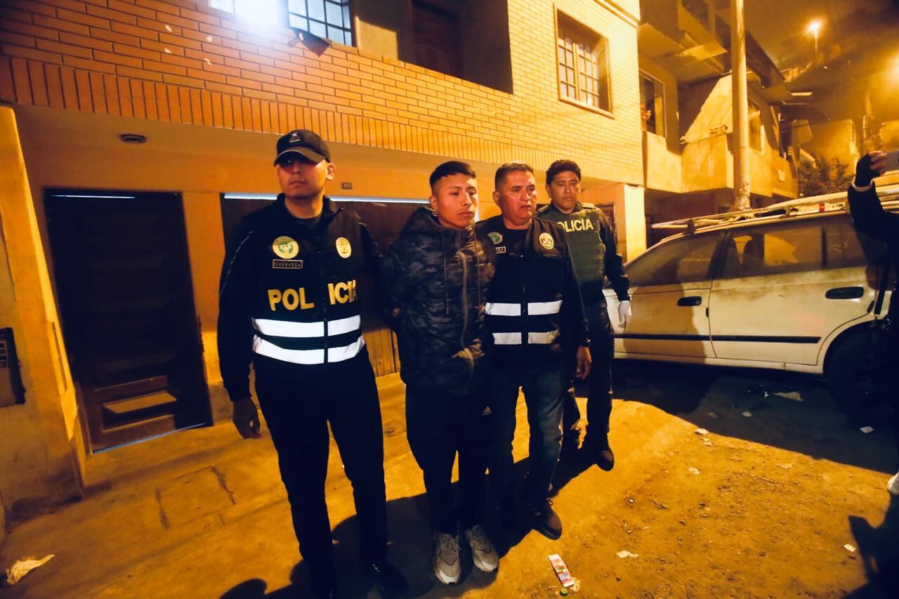 Fuentes policiales identificaron a los detenidos como Joshep Ángel Muñoz Rojas y Luis Aldo Alanya Pacheco, ambos de 24 años, así como a un menor de 17 años con antecedentes por delitos contra el patrimonio.