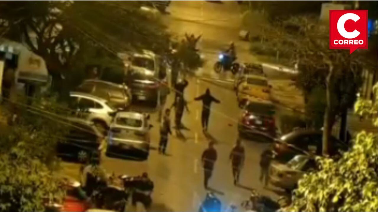 Según las imágenes registradas, los atacantes, presuntamente hinchas del club Alianza Lima, irrumpieron en el lugar lanzando piedras y disparando contra vehículos y fachadas de viviendas.