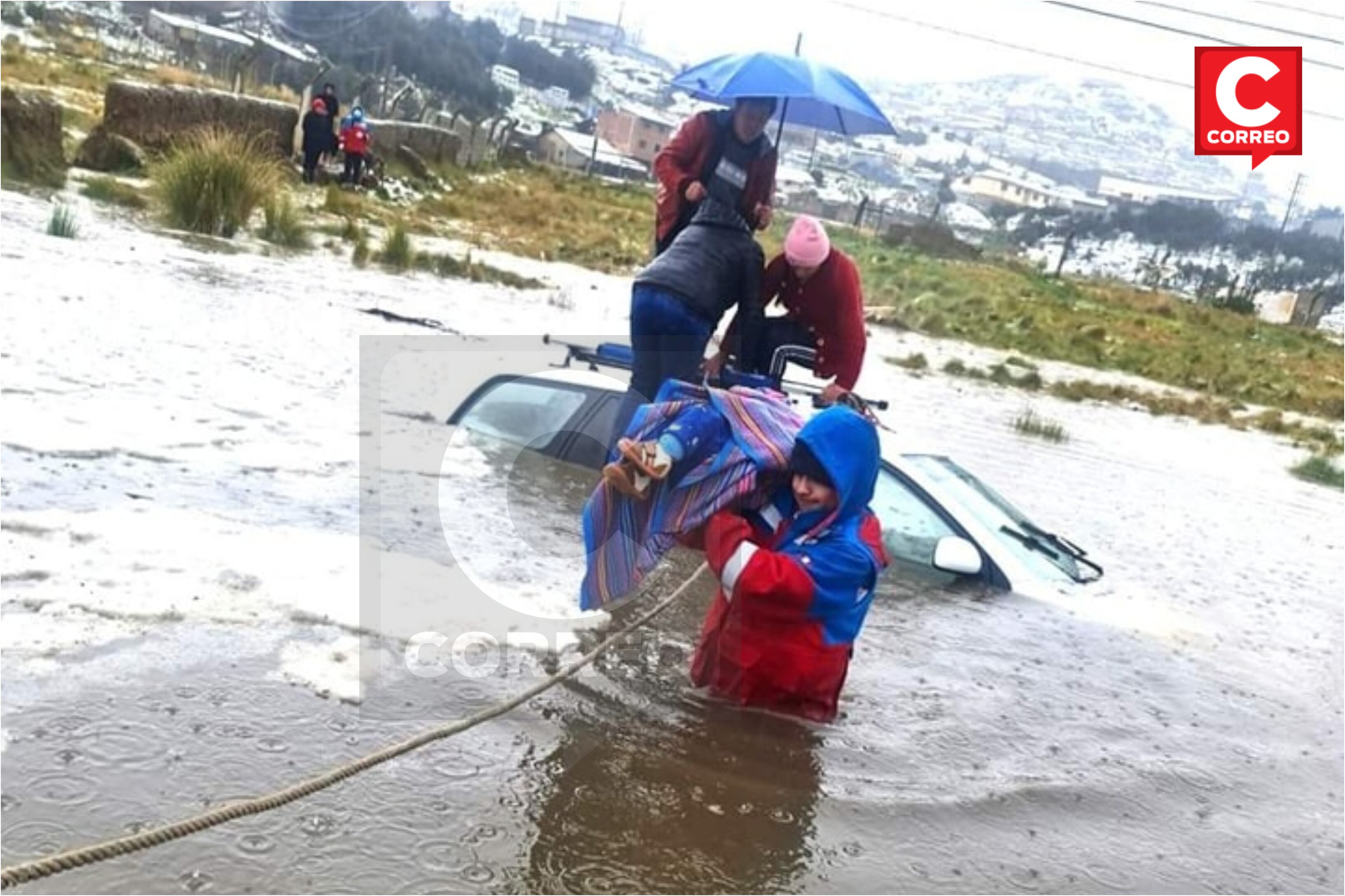 Pasco es castigado por las intensas lluvias. Ayer, el sector La Esperanza, distrito Simón Bolívar, sufrió aniegos de grandes proporciones al punto que un station wagon, se quedó atorado con ocupantes en su interior, entre los que estaba un menor de edad.
