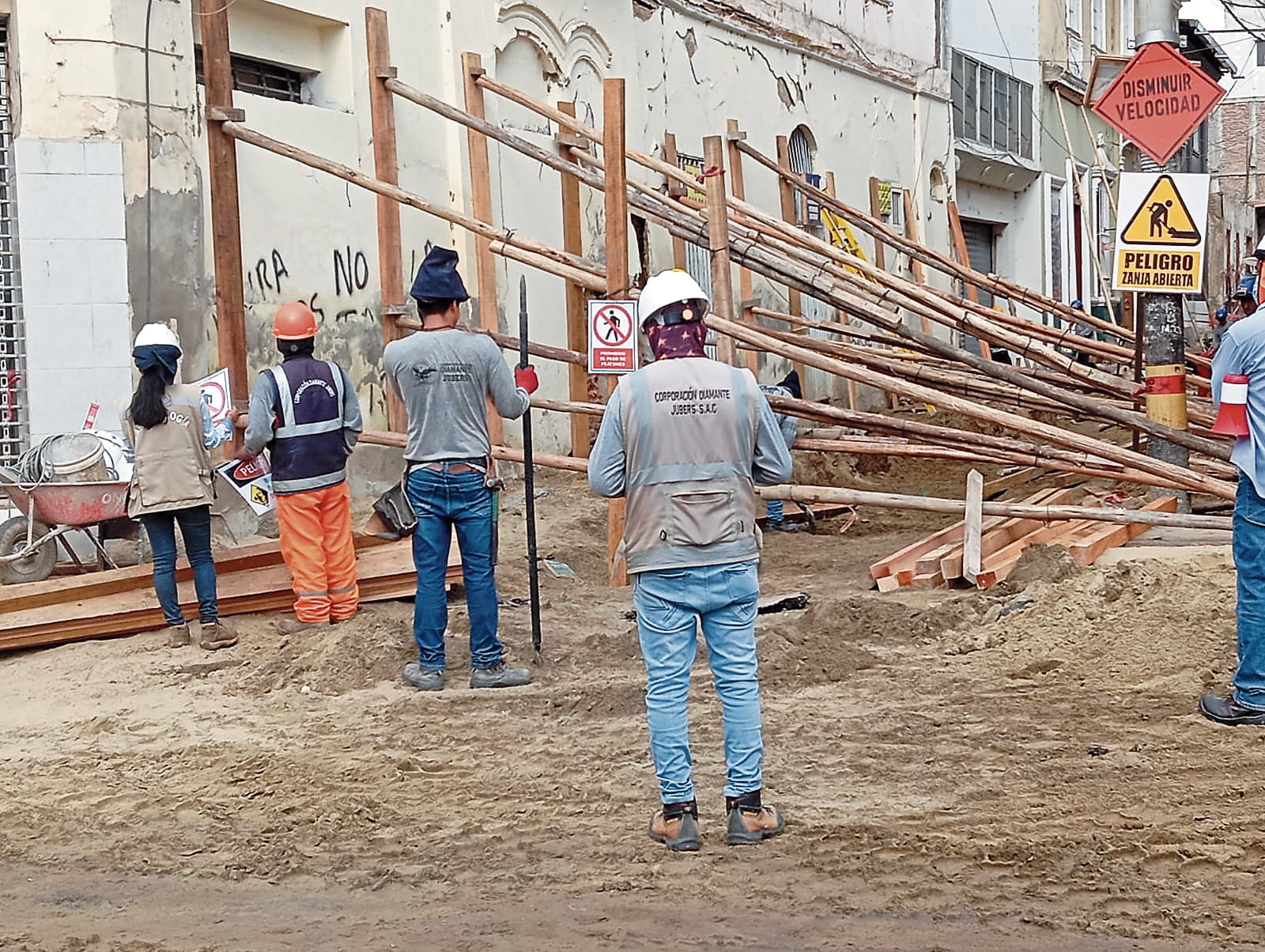 Los moradores explicaron que el consorcio Jubers SAC realiza la remoción y zanjado en estas calles céntricas generando tal situación que pone en aprietos a los dueños de las casonas y de los centros comerciales que también sufren las consecuencias de la ejecución de la obra, pese a que en varios momentos han pedido a la empresa considerar el riesgo que representan los trabajos.