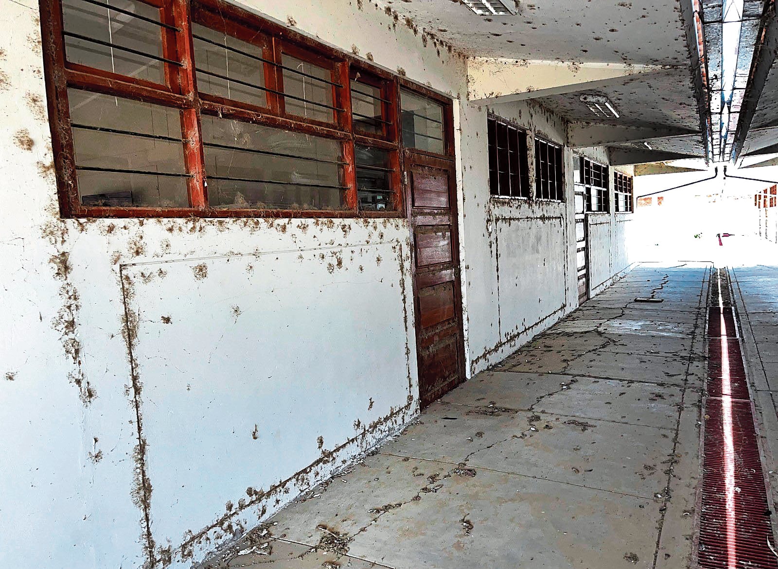 Mientras que los paños del cerco perimétrico ubicados a la izquierda del portal de ingreso principal, presentan mayores fisuras y grietas.