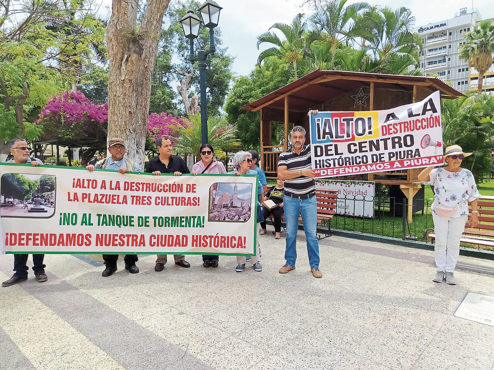 Vecinos y miembros de la Junta Vecinal de la plaza Tres Culturas volvieron a salir a las calles a protestar por los graves problemas que presenta la obra del centro de Piura. El principal reclamo es la reformulación del expediente técnico, al considerar que es la causa de los continuos retrasos y la posibilidad de futuras adendas.