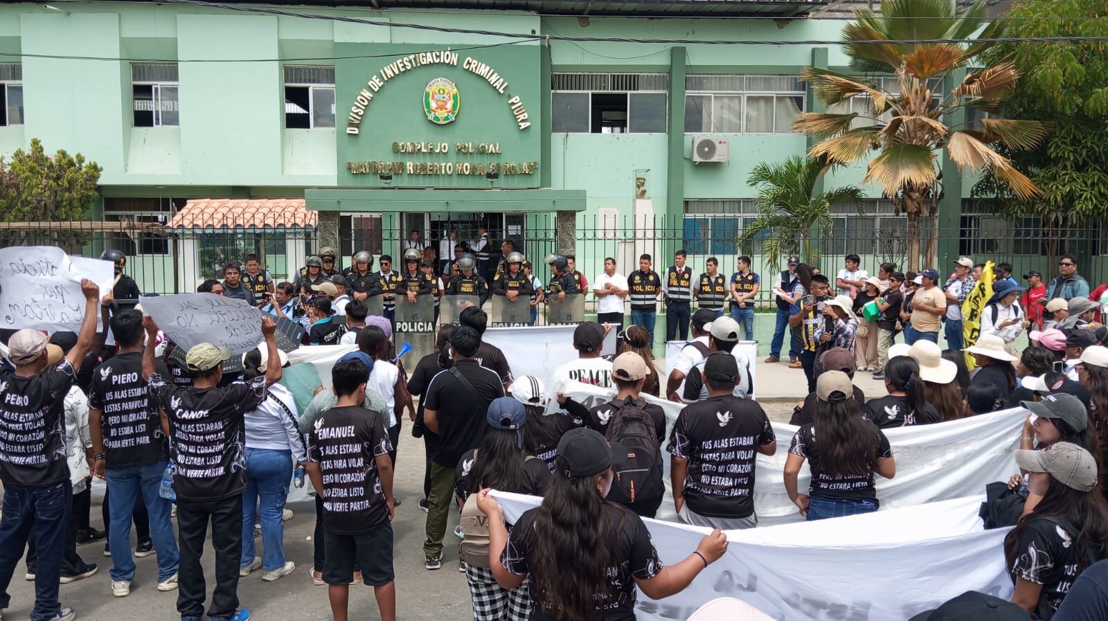 Con los ojos llorosos y a una viva voz, decenas de personas procedentes de los distritos de Vice y Sechura llegaron hasta la sede de la División de Investigación Criminal (Divincri) Piura para exigir se acelere la investigación para dar con los responsables de la muerte de José Fabián Bancayán Fiestas, quien murió a manos de unos sicarios en el distrito de La Unión.
