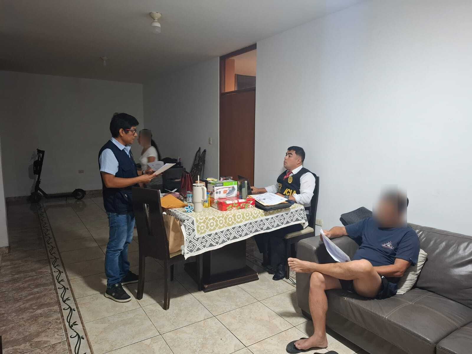 De acuerdo con el Ministerio Público, seis personas son investigadas por los presuntos delitos de organización criminal, falsificación de documentos, falsedad ideológica, lavado de activos —en la modalidad de actos de conversión—, cohecho activo genérico y cohecho activo específico. Los inmuebles intervenidos se ubican en Lima, Piura, Catacaos, Castilla, Veintiséis de Octubre y Talara.