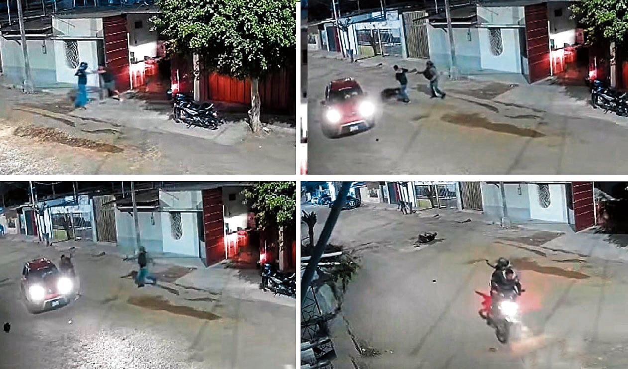 De pronto, el otro hampón abrió fuego contra el ciudadano, quien quedó herido y tendido en plena vía pública. Los delincuentes aprovecharon para correr hacia su motocicleta y huir, realizando disparos para amedrentar a los vecinos con la intención de detenerlos a pedradas.