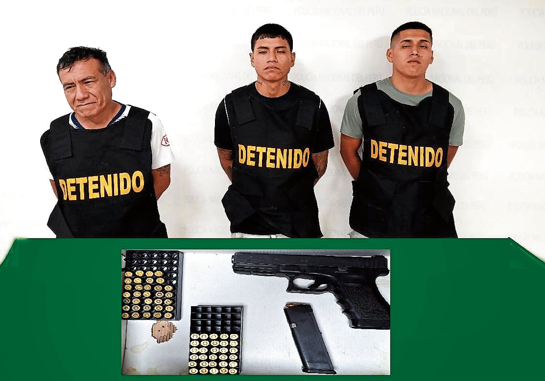 Ellos quedaron detenidos por estar en flagrancia delictiva por los presuntos delitos de tenencia ilegal de arma de fuego y tráfico ilícito de drogas.