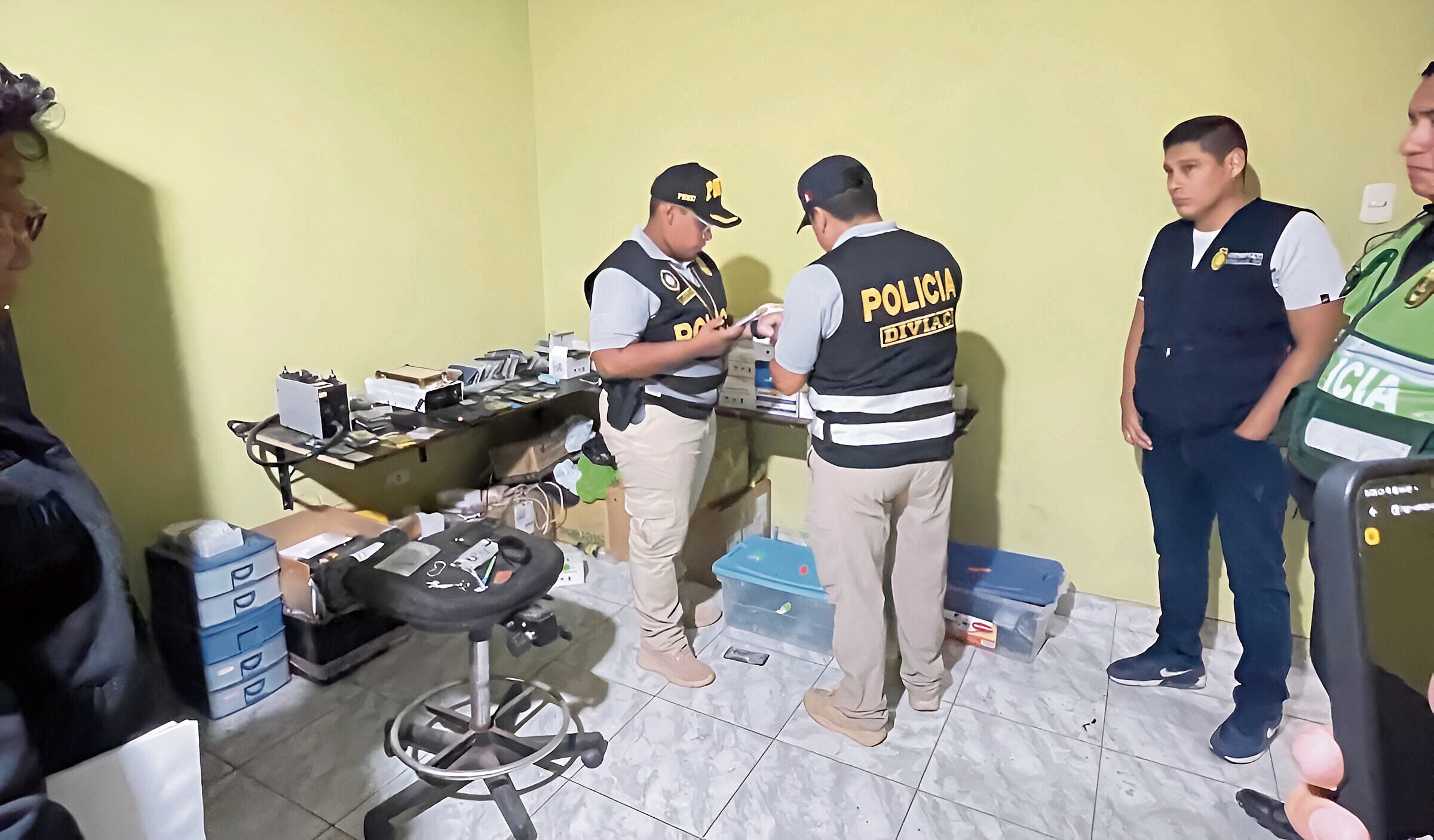 Uno de los casos investigados por personal policial encubierto es la clonación o adulteración de terminales de telecomunicaciones, ocurrido el 26 de agosto del 2024, en el interior del local “Servicio Técnico Christian Cell”, ubicado en el centro comercial El Bosque.