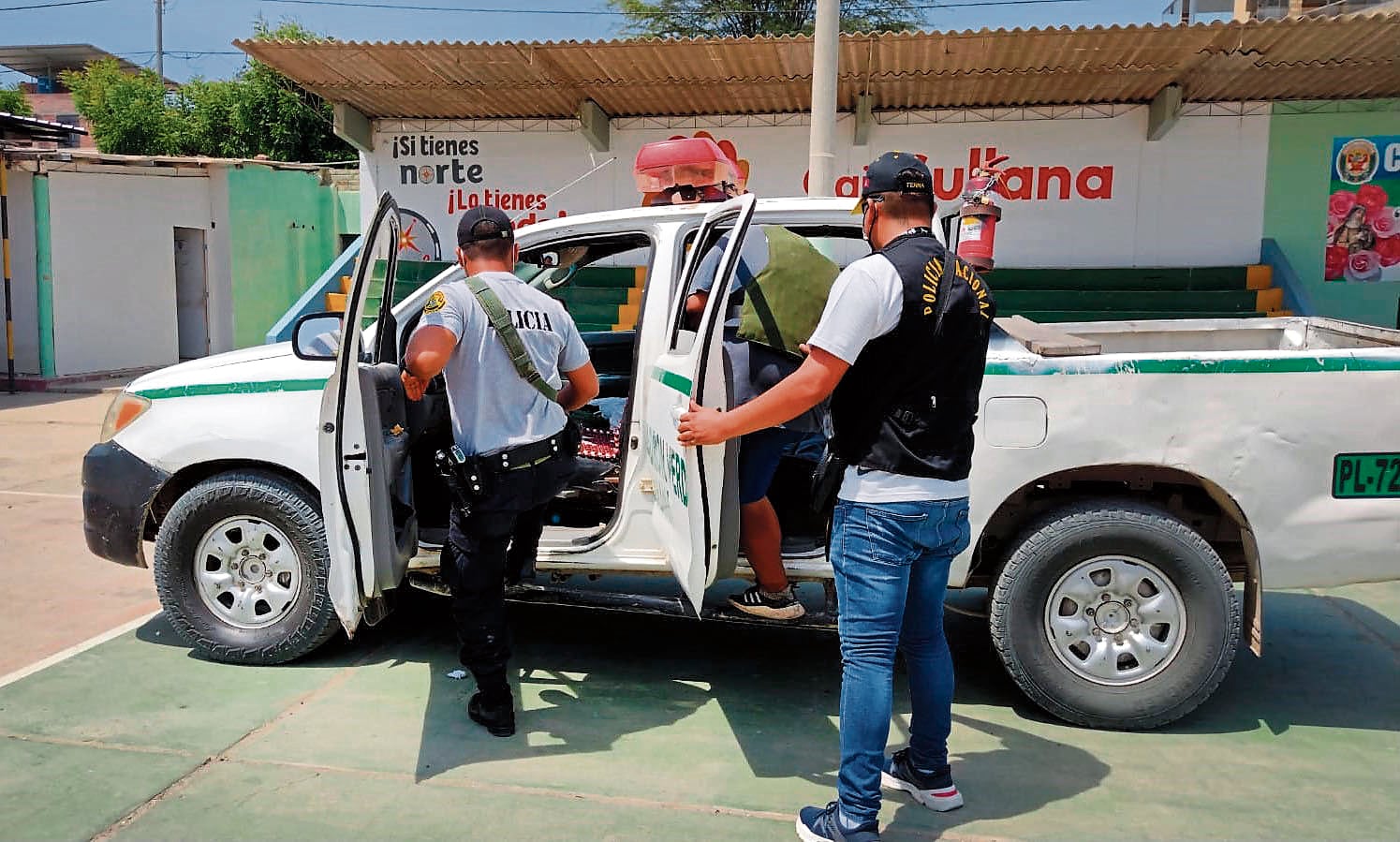 Los detenidos fueron identificados como Jeanpiero J.A.(18), “Chino”; Fabián G.G.(25), “Fabi” y Jhamir V.CH. (20), “Cheka” que iban en un mototaxi por la calle Cuatro, cerca al estadio Campeones del 36 en Sullana.