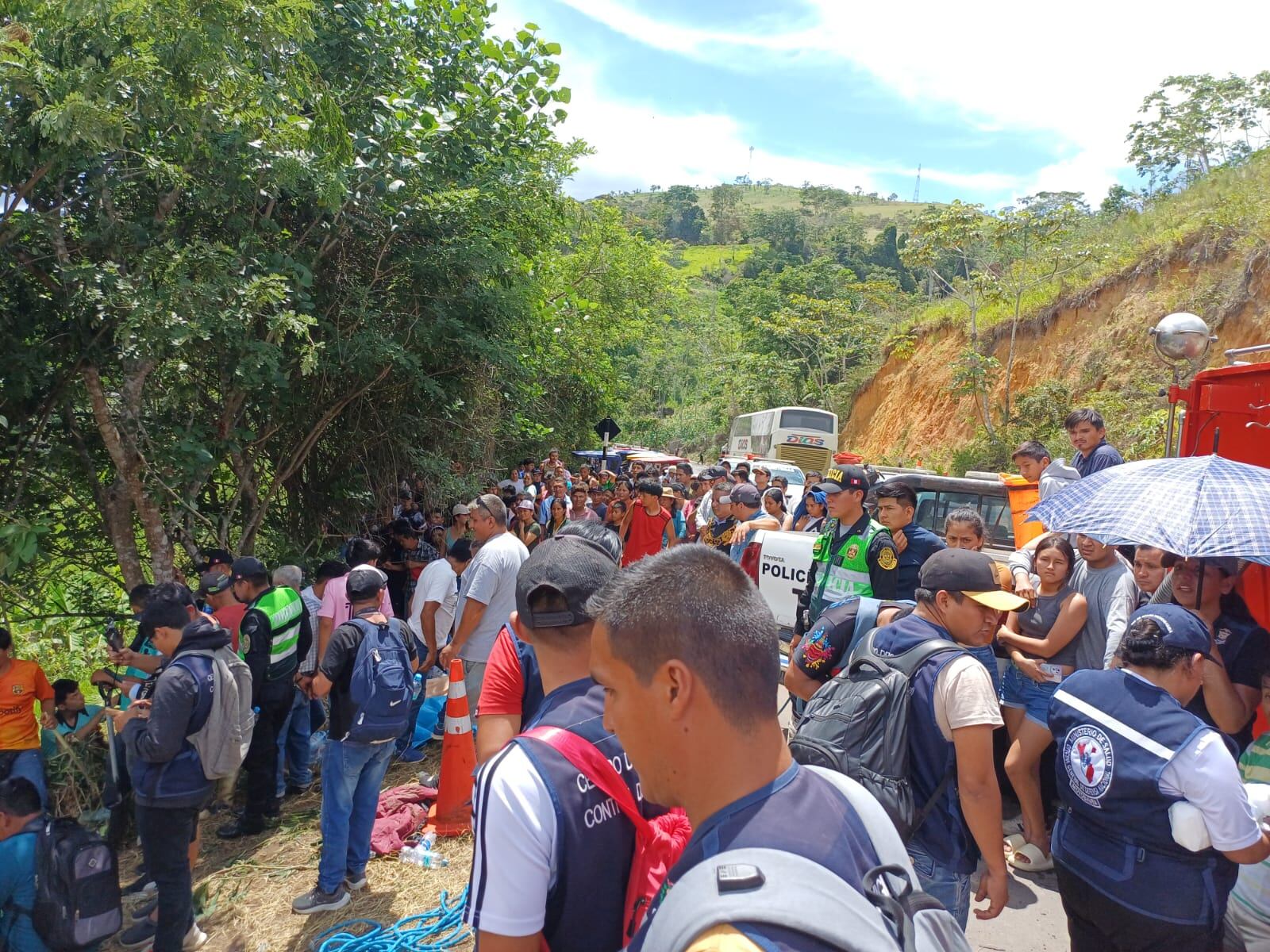 El bus terminó en un precipicio, y tras los gritos de los heridos, los pobladores acudieron a su auxilio para rescatarlos. Luego con el apoyo de la policía, bomberos y personal de salud rescataron los cuerpos sin vida de algunas personas y de los heridos que se encontraban atrapados entre los fierros retorcidos.