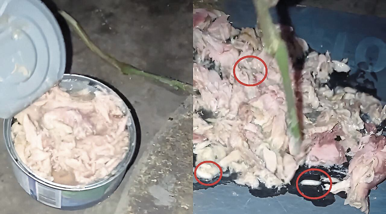 “Estamos abriendo el atún y hemos encontrado varios gusanos, miren señores como están los gusanos dentro del atún que nos han entregado del programa Wasi Mikuna ¿Eso señores está bien o no? Nosotros reclamamos por los niños, cómo ellos van a comer ese producto que está lleno de gusanos. Vamos a reportar para que vean como está el atún”, indica un padre de familia en el video que grabó cuando abrió la lata.