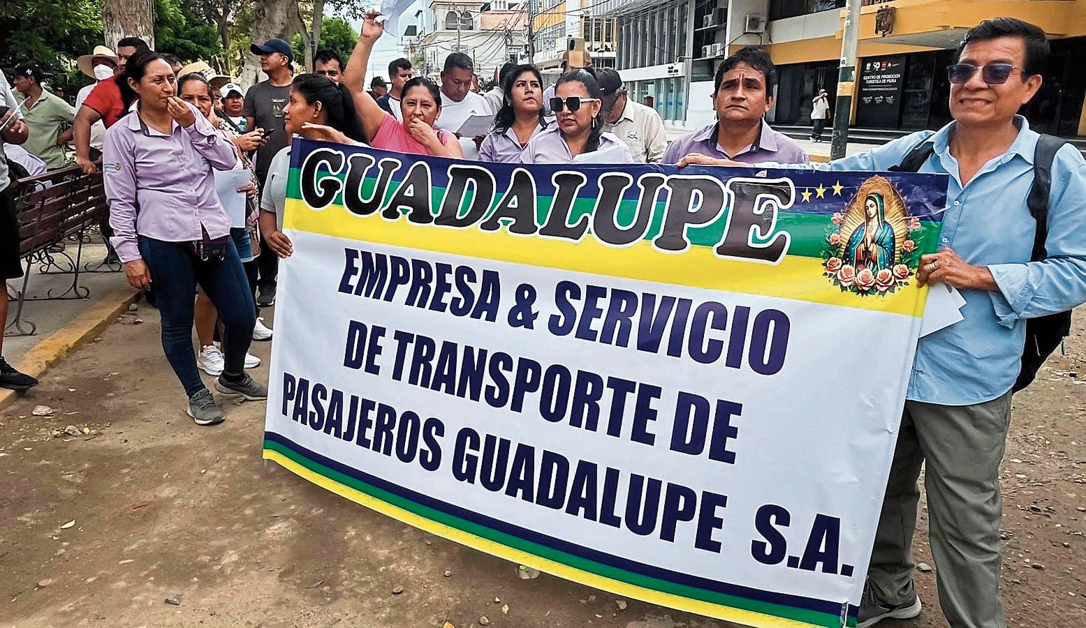 Los representantes de la empresa de transportes Guadalupe realizaron una protesta afuera de la municipalidad de Piura para exigir a la autoridad el cierre de las empresas que invaden rutas ya definidas, calificando esto de competencia desleal.