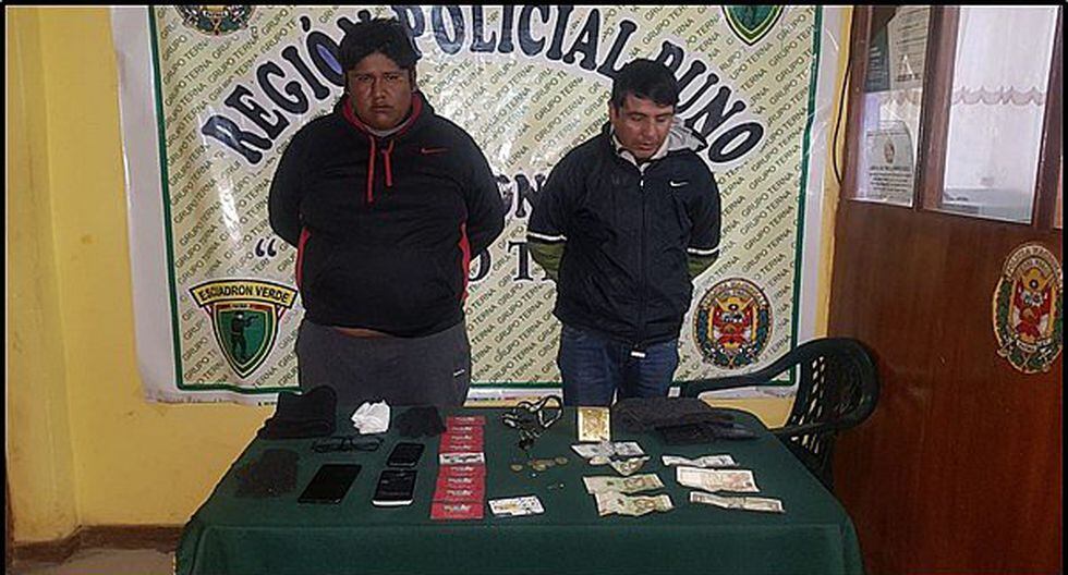Durante el operativo se logró detener a Diego Rodrigo Cáceres Chura (29), alias ‘Botija’y Gil Enrique Quispe Chura (32), alias ‘Chompiras’. Ellos fueron detenidos en las inmediaciones de los jirones Libertad y Tarapacá del centro de la Ciudad Lacustre. Posteriormente fueron trasladados a la comisaría para continuar con las investigaciones.