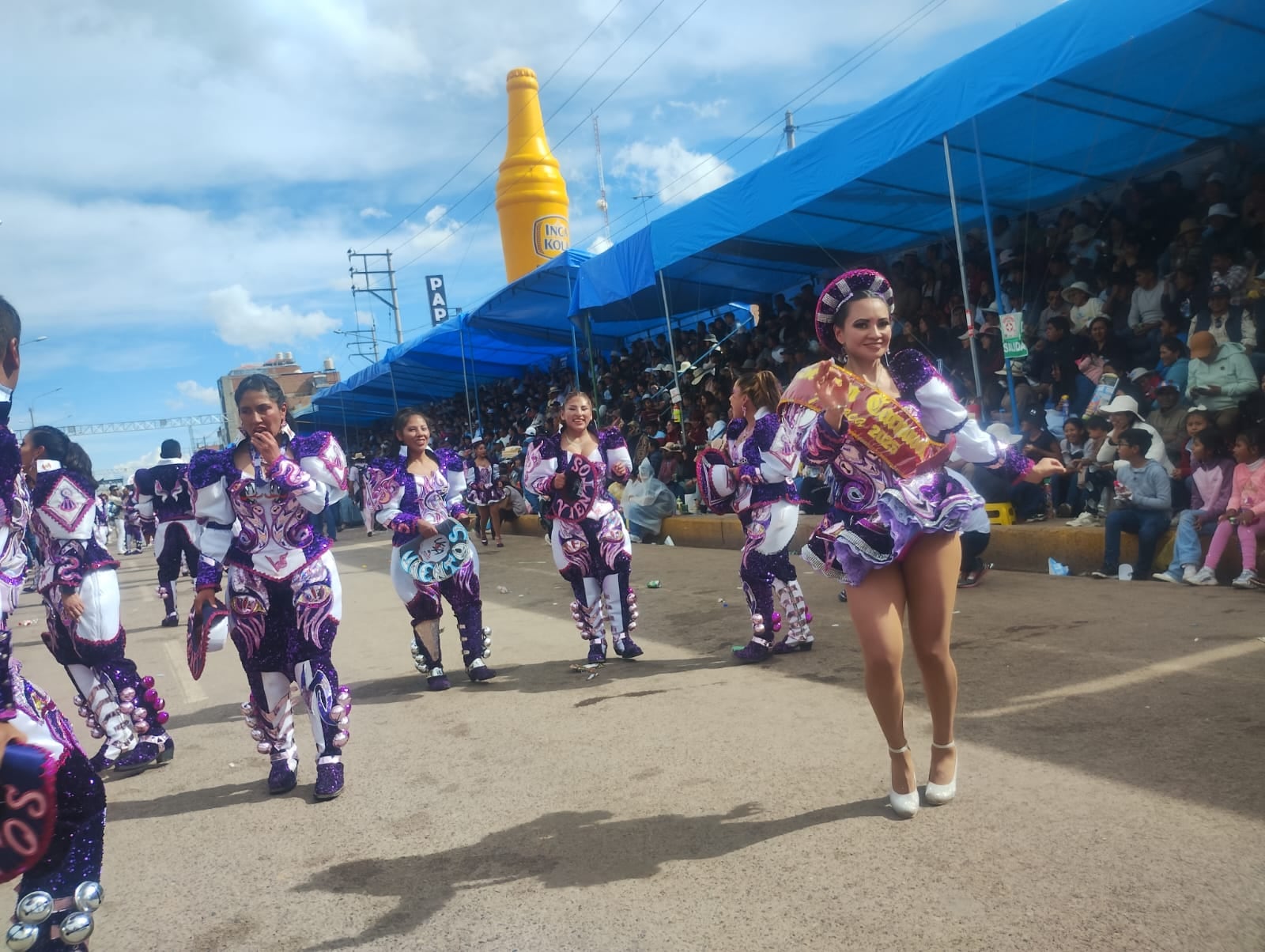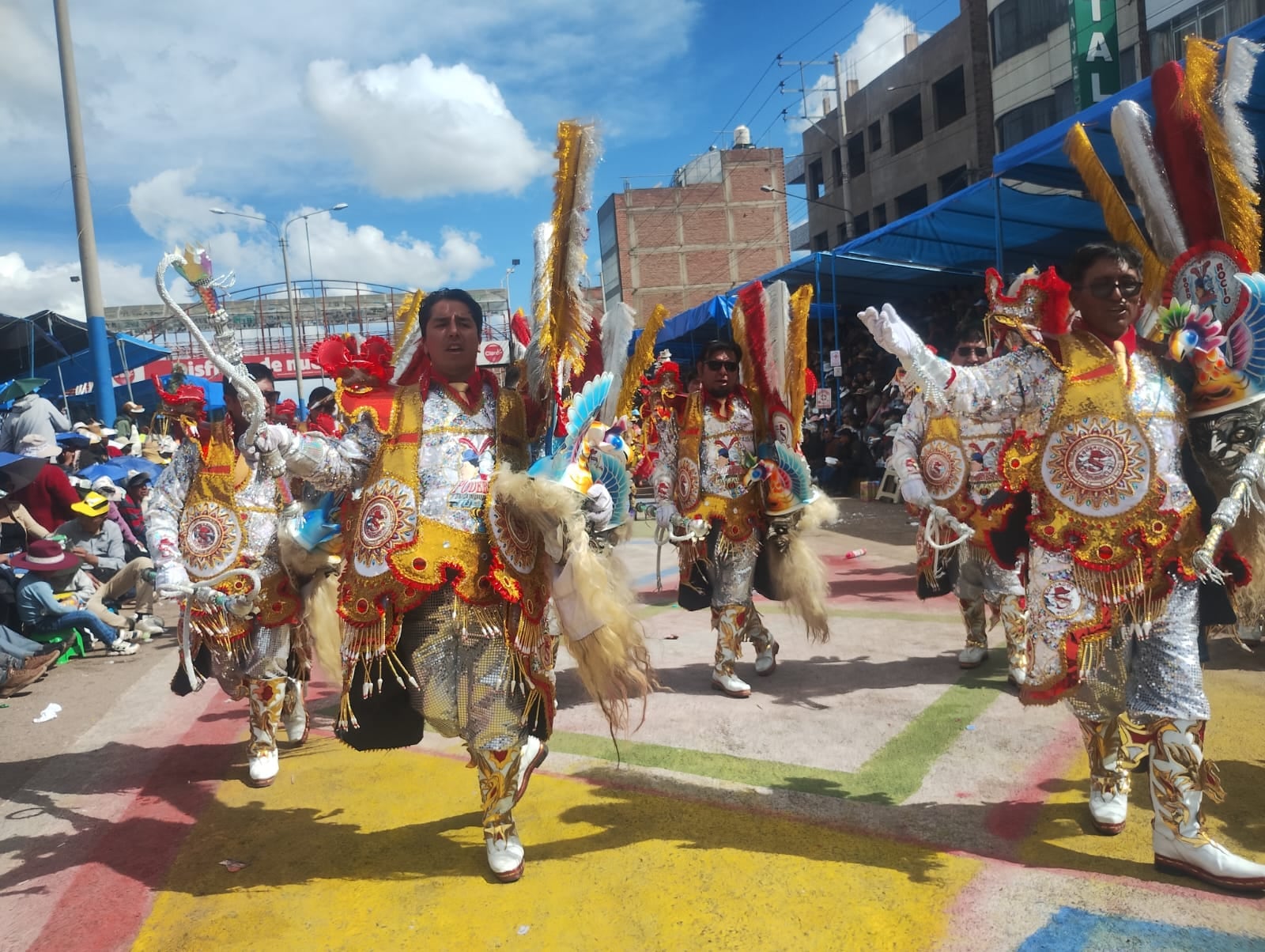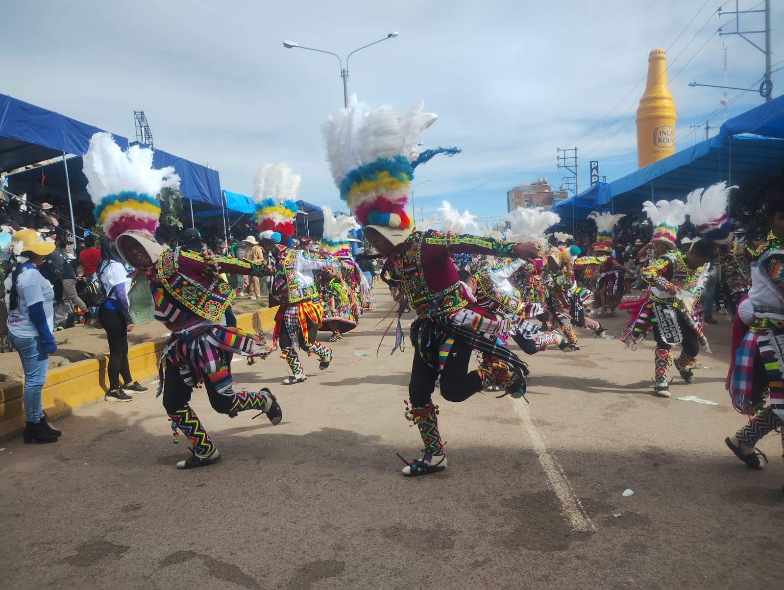 Más de 40 conjuntos de danzas de trajes de luces como: caporales, morenadas, tinkus, sikuris y otros, recorren cerca de 2 kilómetros de las avenidas Mártires del 4 de Noviembre y Tacna, que lucen abarrotados de espectadores.