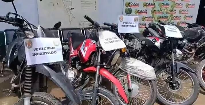 Durante la intervención, la Policía procedió a la incautación de un vehículo mayor y 14 motos lineales. Al verificar los registros, se constató que una de las motocicletas presenta requisitoria vigente por el delito de robo, solicitada por SEPROVE de Piura.