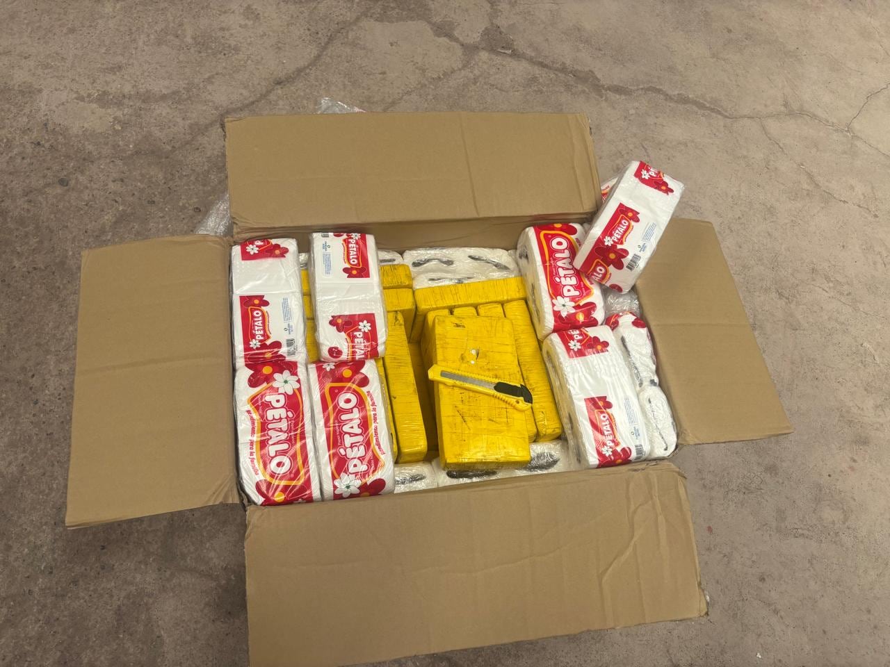 Tras la verificación a la caja de cartón, encontraron un total de 38 paquetes rectangulares con marca de Delfín, camuflados con rollos de papel higiénico, por lo que los intervenidos fueron trasladados hasta la dependencia policial con el objeto de continuar con las diligencias.